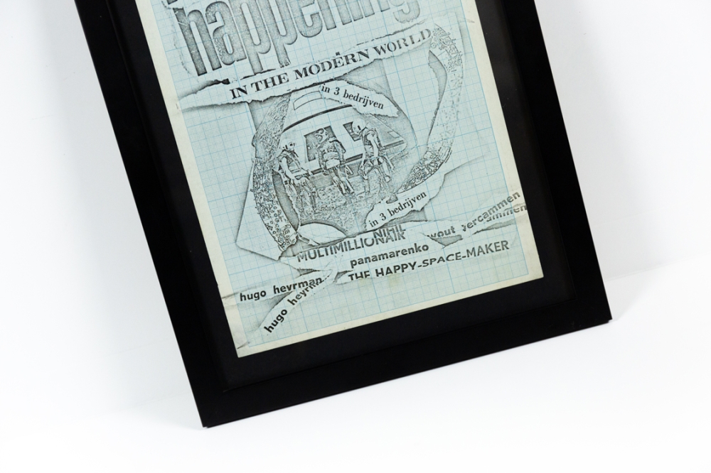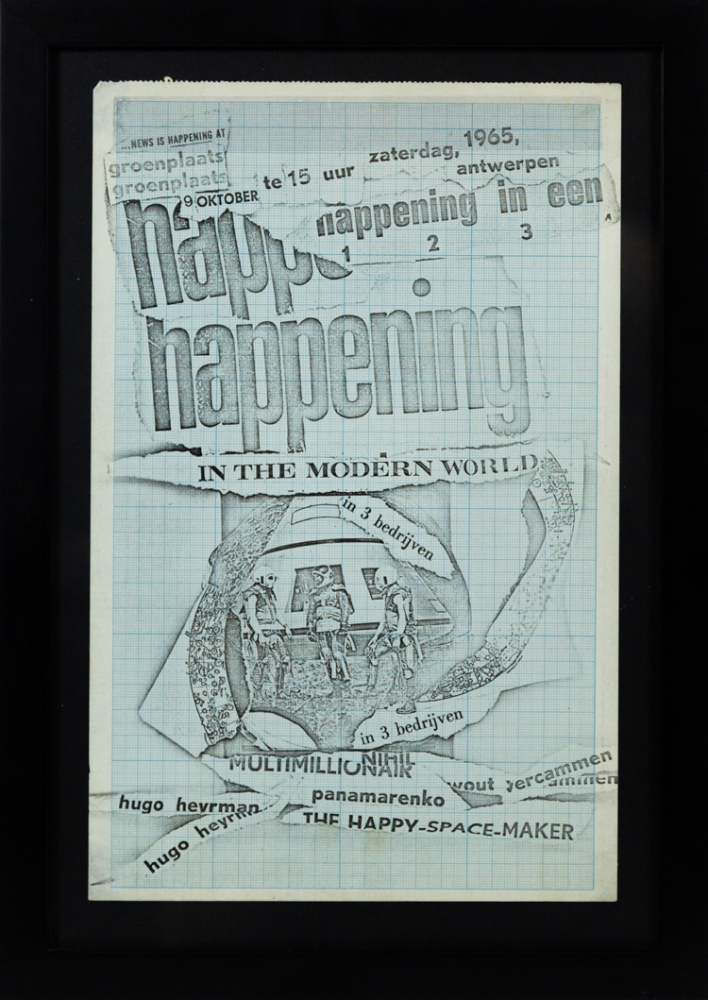 Panamarenko start zijn carrière in de jaren 60 als gangmaker van verschillende happenings, ludieke straatoptredens die hij in het centrum van Antwerpen orkestreert. Dit is één affiche voor dergelijke happening, in Antwerpen 1965.