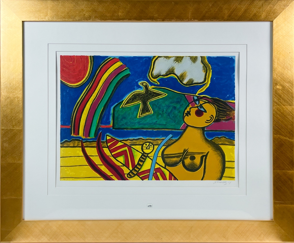 Beautiful colorful color lithograph by Guillaume Corneille. The work is signed and not numbered (proof). The work is framed.