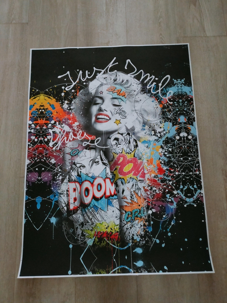 Hannes D'Haese - Just smile Print op doek Niet ingelijst Handgeschreven tekst + handgesigneerd Perfecte staat Elke print heeft een andere tekst dus een uniek exemplaar. Hannes D'Haese is een bekende Belgische kunstenaar.