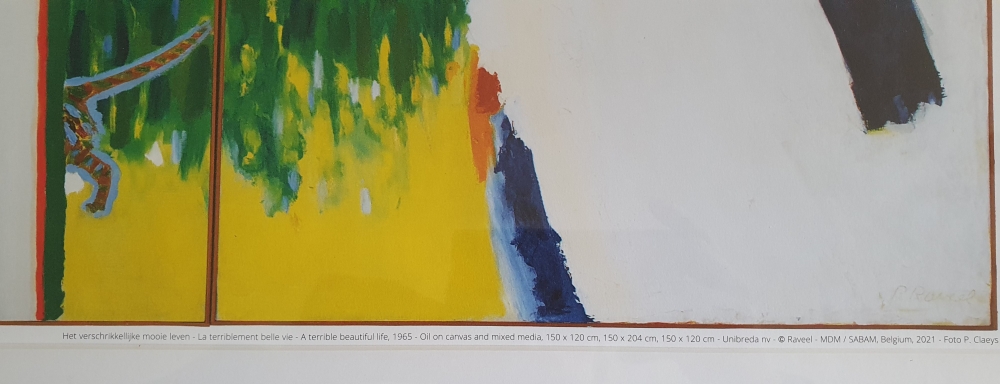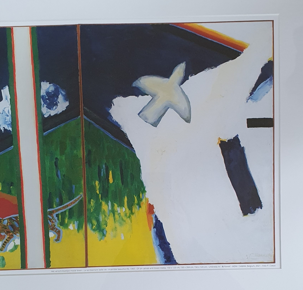 Très belle reproduction/affiche de l'oeuvre 'La terrible belle vie' de 1965 de l'artiste belge Roger Raveel. Cette affiche est sortie à l'occasion du 100ème anniversaire de l'artiste. L'affiche est magnifiquement encadrée avec un double passe-partout, ce qui en fait un accroche-regard abordable pour n'importe quel intérieur.