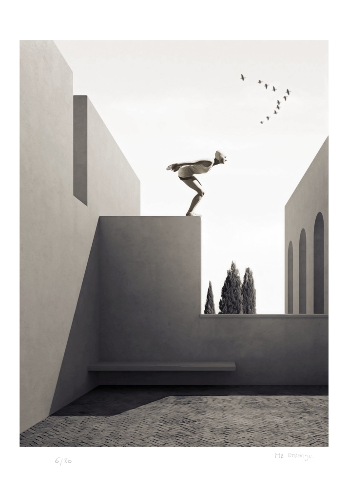 Mr Strange est un artiste français né en 1964 qui vit dans le sud de la France. Après une approche assez classique dartiste plasticien, Mr Strange, très largement inspiré par le surréalisme s'est peu à peu éloigné de la peinture classique pour s'intéresser à des formes polymorphes, mêlant peinture et sculpture. Cest sa période des "Spictures". Son évolution artistique l'amène à s'approprier le support numérique et créer ce qu'il nomme ses photomanipulations. Hybridation, logique de l'absurde, subversion, sont les portes d'entrées de prédilection de l'artiste. De la naissance à la mort, de l'individu à la société, il n'épargne personne. Mr Strange manie le surréalisme avec une certaine dérision, et propose une réflexion personnelle sur le monde tantôt poétique, tantôt caustique mais toujours aiguisée. The Flight / 2022 Giclée sur papier Hanhemühle. Edition limitée, numérotée 8/30 et signée à la main dans la marge blanche. Cachet de l'artiste embossé à sec (initiales MS) Envoyé avec un certificat d'authenticité. Taille totale : 70 x 50 cm. Le bord blanc facilitera la mise en place de l'uvre dans un passe-partout. Neuf / jamais encadré. Envoyé par UPS dans un tube adapté.