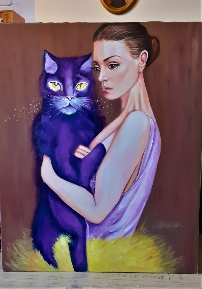 Dame au chat violet-abstrait,huile sur toile,120/90cm,signé,2023. L'uvre a été créée en 2023 par l'artiste peintre Denis Mihai. - Le vendeur est le peintre de cette uvre. - Livré avec un certificat d'authenticité signé à la main de Denis Mihai. - L'uvre est en excellent état. - Toile avec apprêt blanc, couleurs à l'huile utilisées, fabriquée en Italie, super qualité. - La toile est livrée roulée. - La toile sera livrée sans cadre en bois. - L'expédition s'effectue par rouleau, via un service de messagerie reconnu. - La livraison dans le monde entier est possible. Mihai Denis est un peintre professionnel doté d'une riche expérience artistique et d'un talent exceptionnel. Né dans une famille cultivant l'amour des arts visuels, Mihai a commencé à peindre dès son enfance et a continué à développer ses compétences artistiques pendant l'adolescence et ses études universitaires. Avec une passion particulière pour l'art contemporain, Mihai Denis a créé une gamme diversifiée d'uvres dans différents styles et sujets, démontrant ainsi ses vastes compétences et sa créativité dans le domaine de l'art. Il est connu pour son approche innovante des techniques de peinture, qui implique l'utilisation de mélanges de couleurs et de textures attrayantes, créant des effets visuels fascinants dans ses uvres.