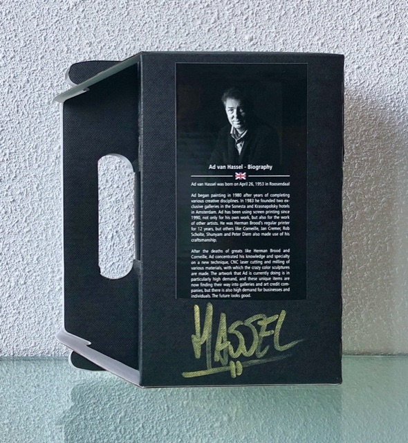 Sculpture spéciale Pop Art par Ad van Hassel Étain dans un emballage en carton. La taille est : 18 x 20 x 7 cm Signé à la main au dos et fourni avec une biographie de l'artiste. Les deux uvres sont un clin d'il au travail PopArt d'Andy Warhol et de Coca Cola. Les canettes sont vides, jamais remplies