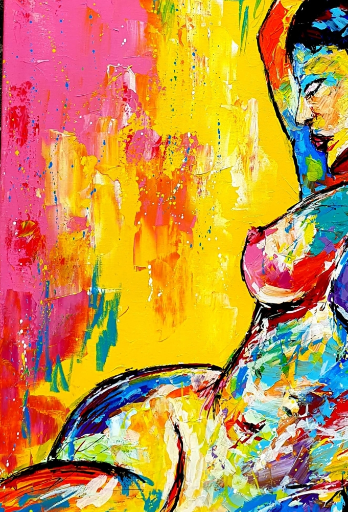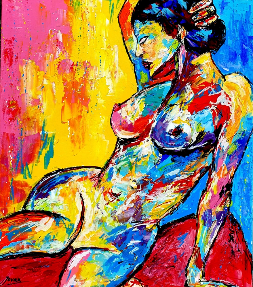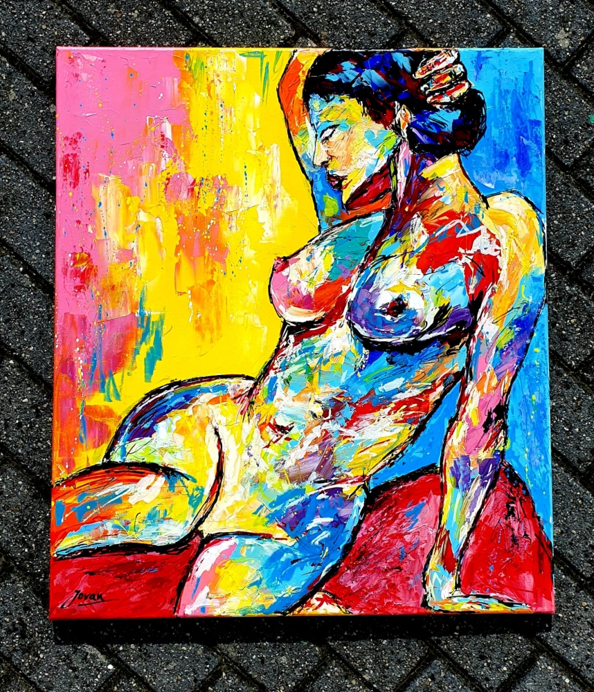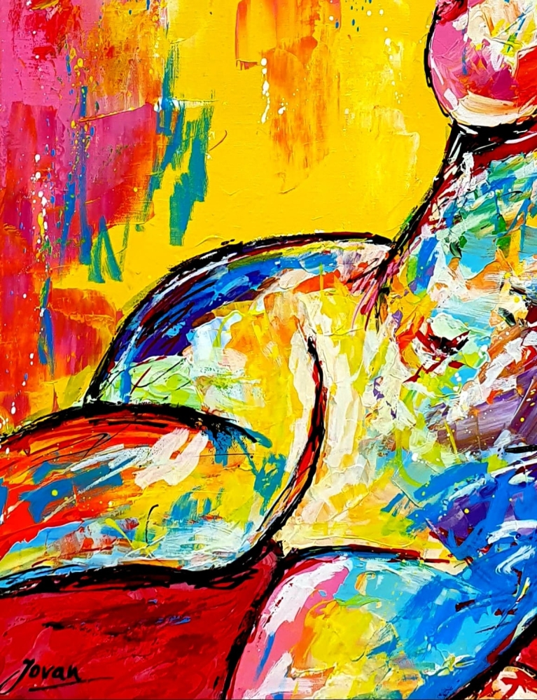 Composition expressionniste abstraite originale de l'artiste contemporain professionnel néerlandais Jovan Srijemac (1962). L'uvre est peinte au couteau à palette et à la peinture acrylique sur toile. La peinture est expressive et appliquée sur toile avec un grand dynamisme. Laqué et avec certificat d'authenticité Jovan Srijemac (1962) est un artiste professionnel basé aux Pays-Bas qui a exposé ses peintures aux niveaux national et international. Artiste professionnel depuis les années 1980, son expression artistique a pris diverses formes au fil des années. Il décrit son style comme une application inconsciente, souvent chaotique et explosive de peinture sur la toile, cachée dans des figures, des objets et des compositions abstraites imprévus. Les compositions vibrantes de Jovan sont souvent créées avec un couteau à palette, mais ses uvres de style Pop/Street Art utilisent également de la peinture en aérosol, des marqueurs acryliques ou des pastels. Son travail est vendu dans le monde entier à des particuliers, des collectionneurs d'art et des entreprises.