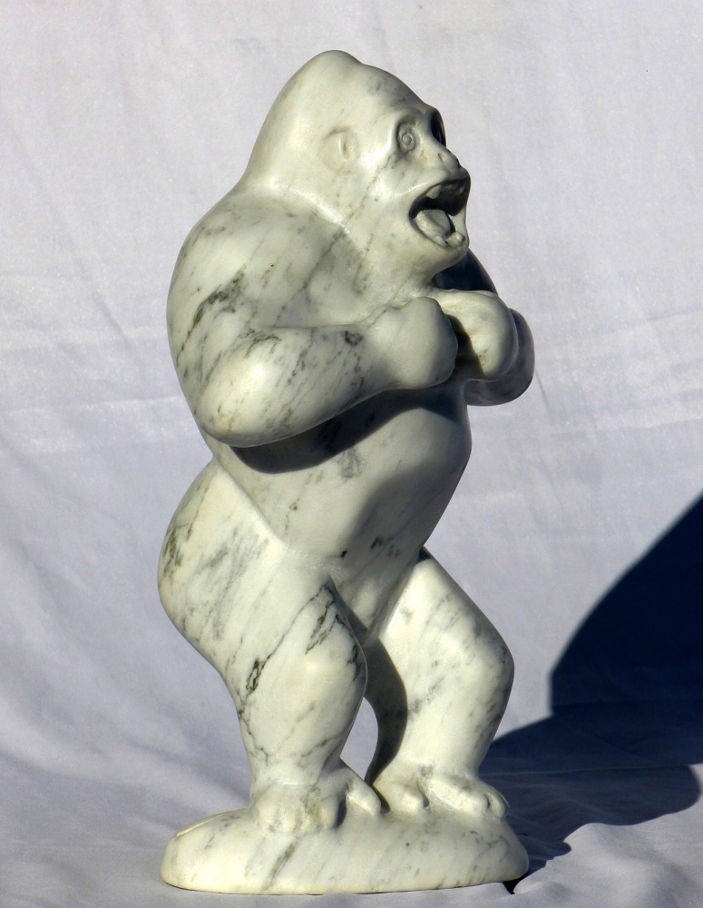 Statuette sculptée, par taille directe, dans un bloc de Marbre Bianco Arabescato de Carrare (Italie). Sculptée manuellement dans mon atelier à Mougins (France). Pièce unique neuve. Signature gravée sur la base de la statuette. Certificat d'authenticité signé par l'artiste.