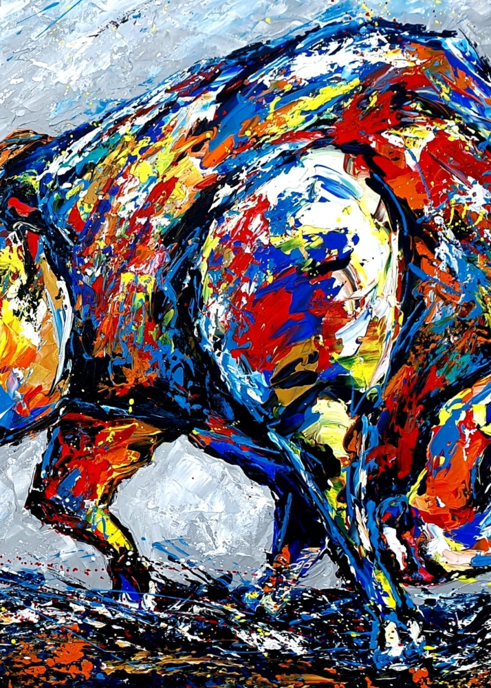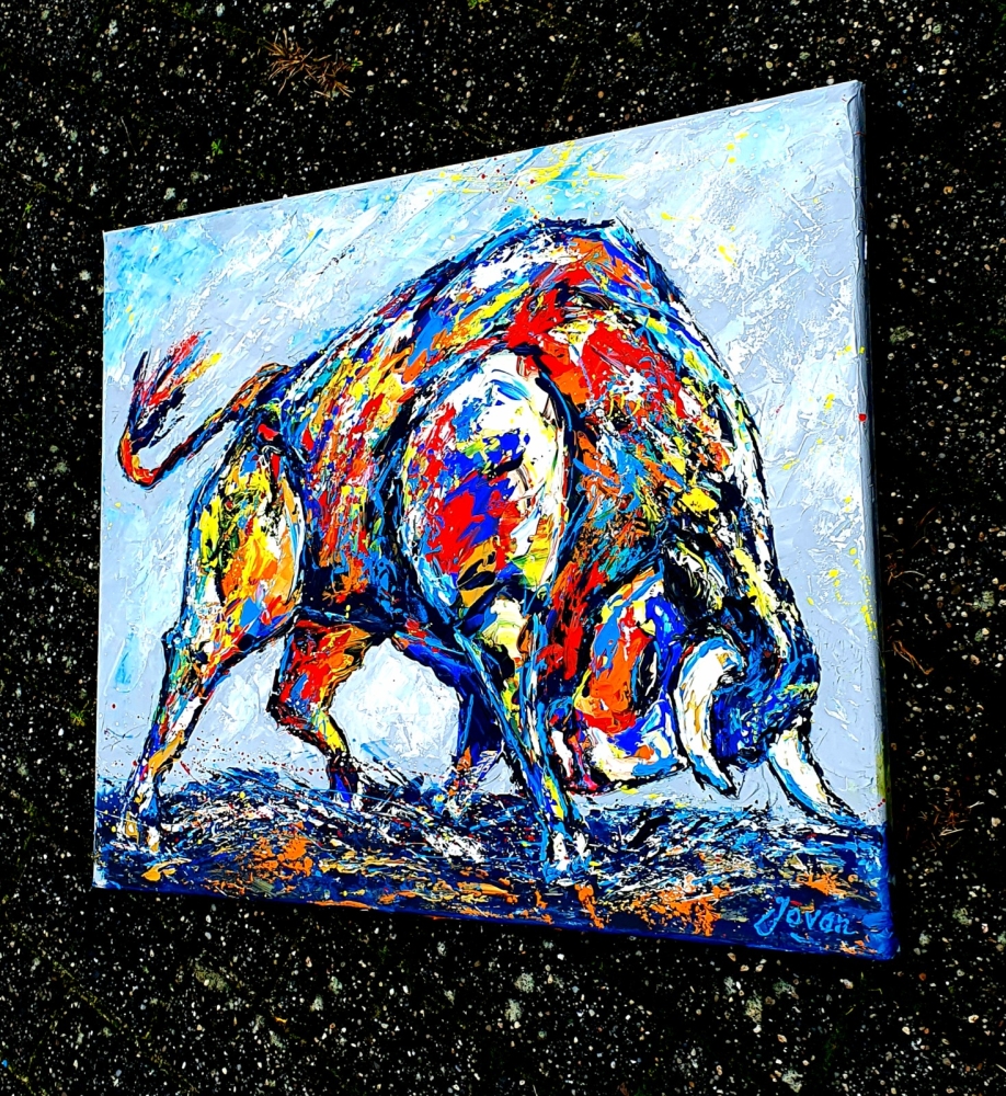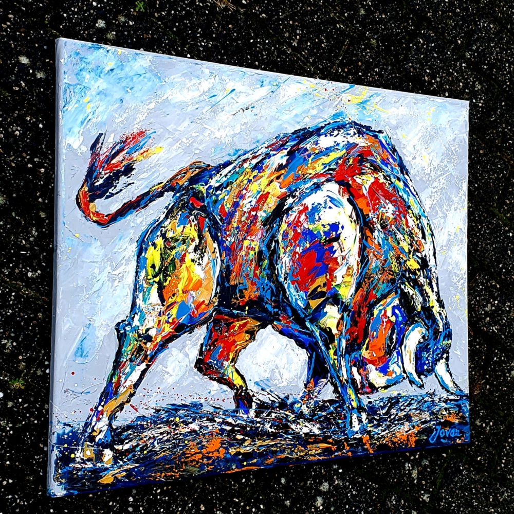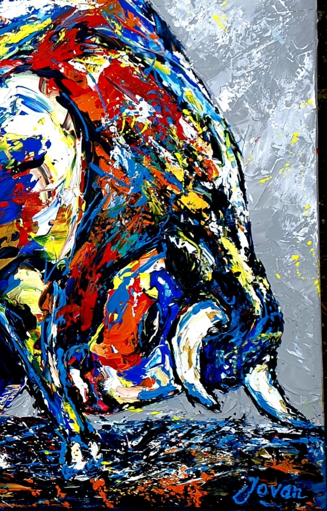 Origineel abstract expressionistisch painting van Nederlandse professionele contemporary artist Jovan Srijemac(1962). Werk is geschilderd met paletmes met acryl verf op canvas . Verf is expressief en met veel dynamiek op doek aangebracht. Gevernist, en met certificaat van echtheid. Jovan Srijemac (1962) is een in Nederland gevestigde professioneel kunstenaar die zijn schilderijen zowel nationaal als internationaal heeft tentoongesteld. Als professioneel kunstenaar sinds de jaren 80, heeft zijn artistieke expressie door de jaren heen verschillende vormen aangenomen. Hij beschrijft zijn stijl als een onbewuste, vaak chaotische en explosieve toepassing van verf op het doek, wat resulteert in ongeplande figuren, objecten en abstracte composities. De levendige composities van Jovan zijn vaak gemaakt met paletmes maar ook , in zijn werken in Pop/Street Art stijl, wordt spuitverf , acryl markers of pastel gebruikt. Zijn werk wordt verkocht over de hele wereld aan particulieren , kunst verzamelaars en bedrijven.