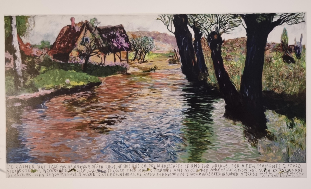 Prachtige offset van Rinus Van De Velde op karton. XL Artcard. Niet gesigneerd. Niet genummerd. 30 x 18 cm. Fictie en realiteit, maar ook woorden en beelden vloeien samen in het werk van Rinus Van de Velde (1983). Met tekeningen, sculpturen, installaties, fotos en films bouwt deze Belgische totaalkunstenaar de absurdistische verhalen na die zich in zijn hoofd afspelen