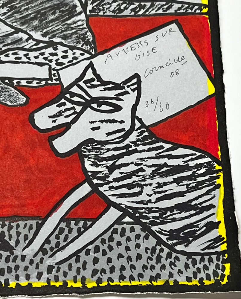 Un éloge du bonheur de vivre à la campagne! L'une des dernières grandes oeuvres du peintre installé à Auvers-Sur-Oise, le village de Van-Gogh. Le serpent rappelle la période Cobra de l'artiste. Belle lithographie sur papier vélin épais. Signée et datée de la main de l'artiste. Numérotée 36/60 - Tampon Atelier Corneille au dos Dimensions : 47,5 x 54 cm Oeuvre d'un rouge éclatant avec la célèbre église peinte par Van-Gogh, et quelques éléments de la campagne environnante (proche de Paris). Très bon état. Envoi sécurisé par UPS