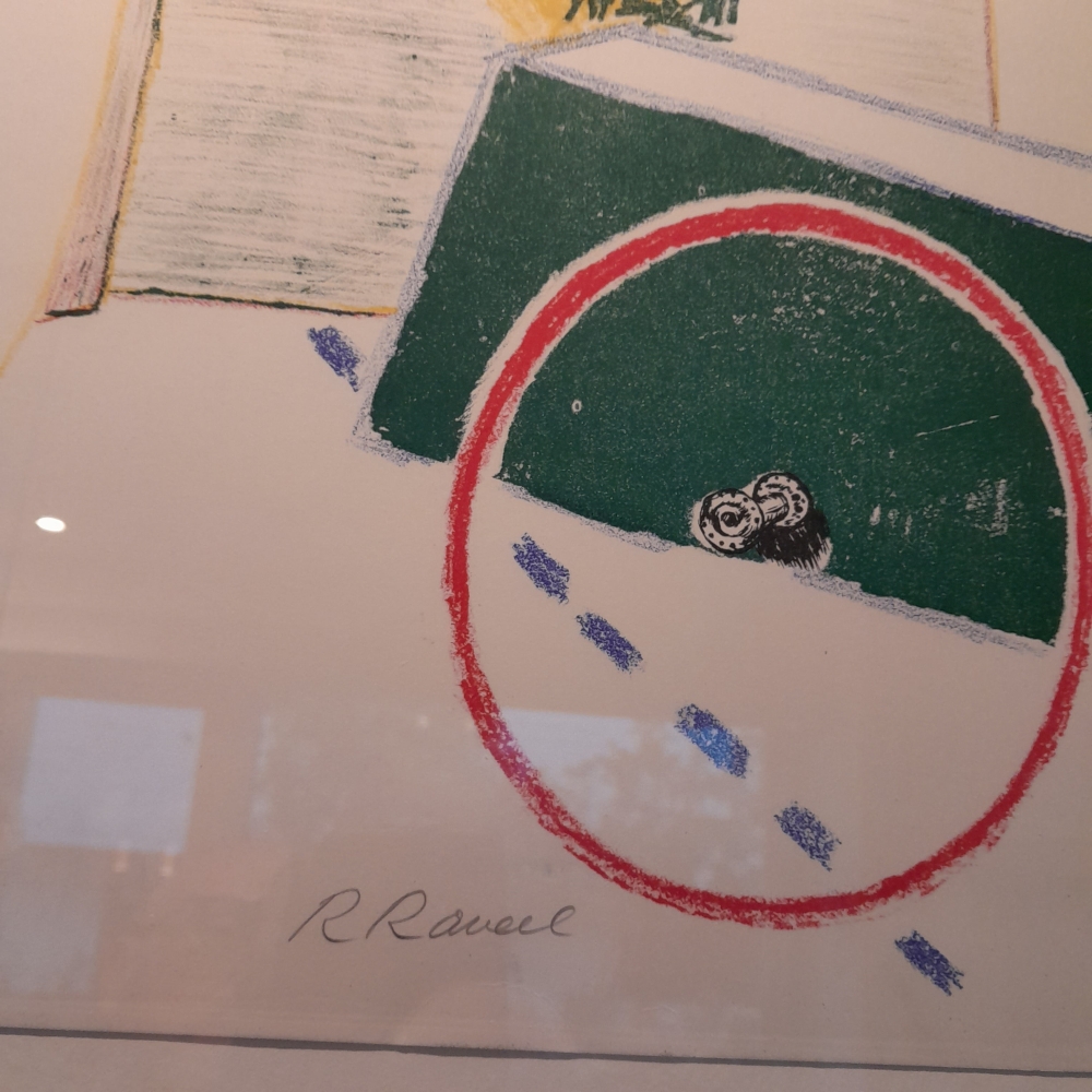 Roger RAVEEL (1921-2013), kleurenlithografie 'Karretje, muur en witte aanwezigheid', genummerd 141/210 en getekend Dimensions: 55 x 71.5 in kader van 100x76 cm Oud werk van 1966 met bijzondere vermeldingen in zijn oevre overzicht