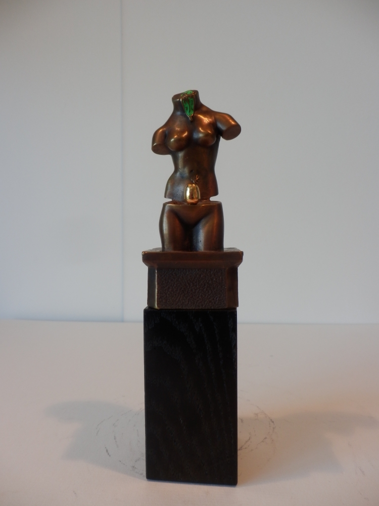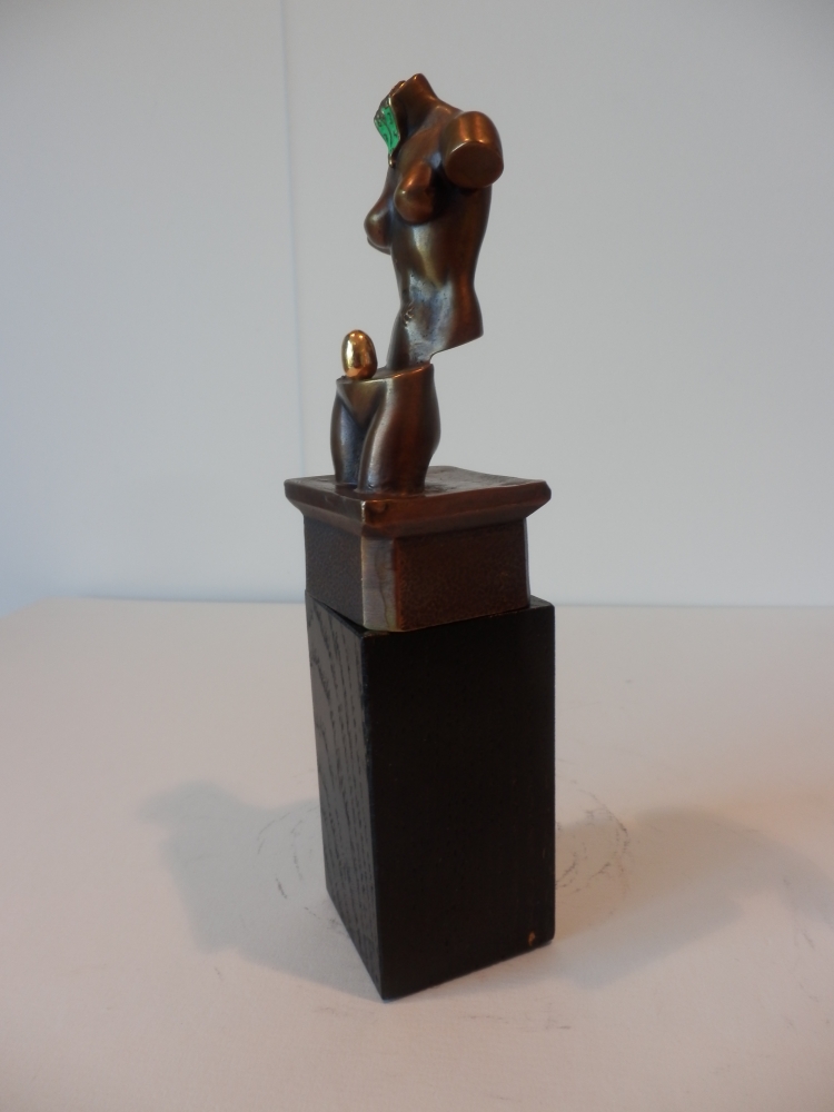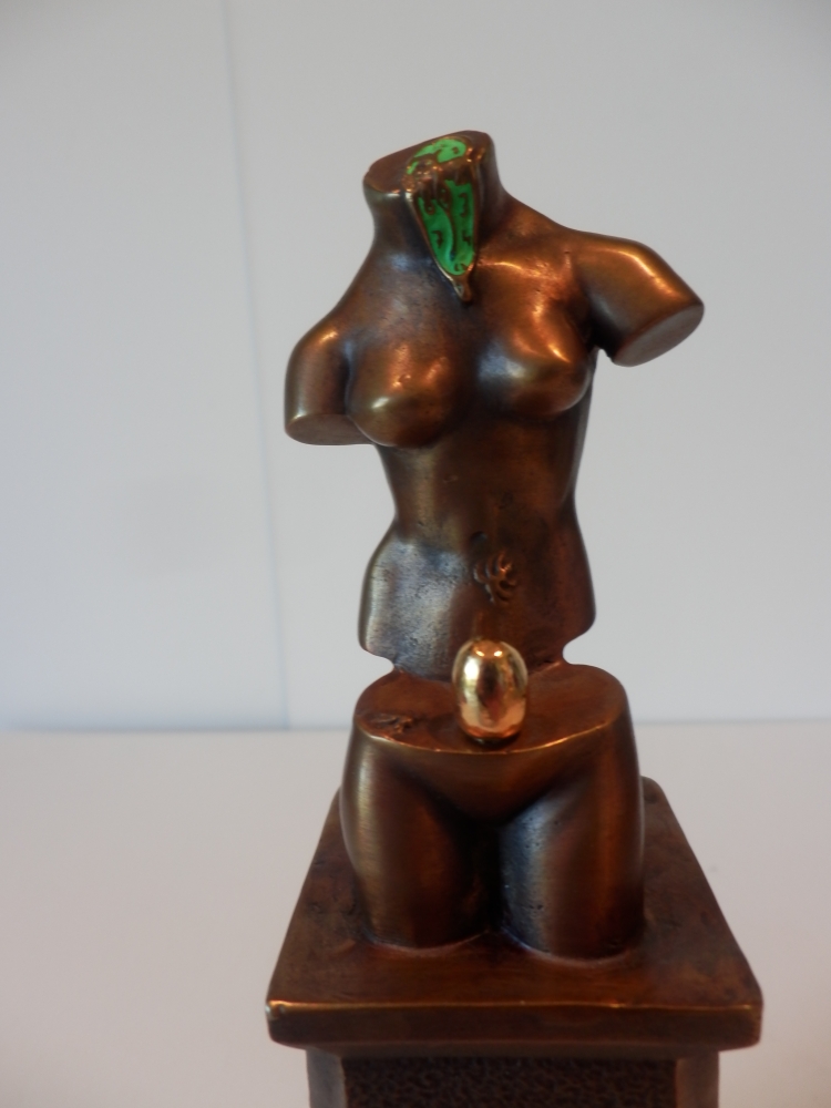 Belle sculpture en bronze d'après l'œuvre Space Venus de Salvador Dali. Édition limitée de la collection Les Beaux Arts. La hauteur de la sculpture (sans socle) est de 11 cm de haut et est posée sur un socle en bois noir. La signature est coulée en bronze. L'œuvre est en très bon état et numérotée 3952/7500.