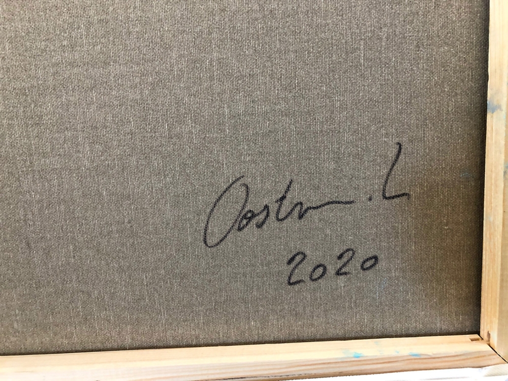 Cette uvre a été créée après avoir photographié des images en mouvement dans un film. La dame prend un bain de soleil sur un matelas gonflable violet. Elle déplace l'eau avec ses jambes. Lambert Oostrum est toujours actif en tant qu'artiste visuel. Au début de sa carrière, il remporte le prix Alfons Blomme en 1987. Récemment Lambert travaille plus abstrait avec figuration occasionnelle. En 2018, il a été nominé pour le Herman Krikhaarprijs à Almelo. Le tableau de la nomination s'appelle: Produit frais Ceci peut être lu sur son site Web: www.lambertoostrum.nl