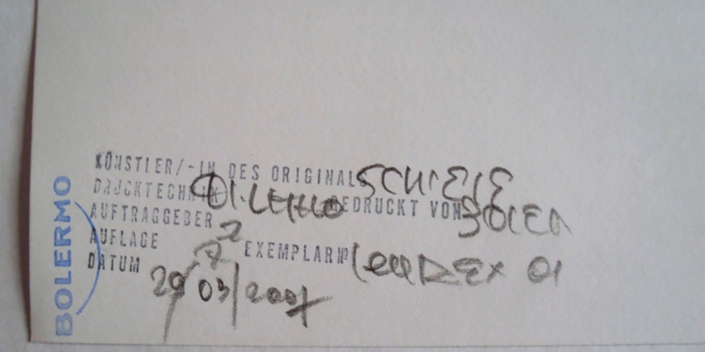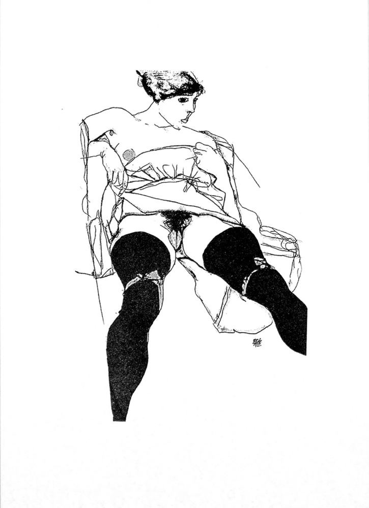 Litho "Frau mit schwarzen Strapsen". Edited 2007 non authorized copy. From the original inkwash dated 1913 with image of Wally Neuzil. Special edition as a Di-Litho by Bolermo in 2007. Printed single sided on thick design paper. Size: 42 cm x 29,5 cm (16,8 "x 11,8"). Signed in the plate - numbered on reverse side. COA on reverse with mention : Leer Ex (Proof). Mint condition- Information: Di-litho technology, a lithographic technology in which the printing plate presses directly onto the printing substrate.