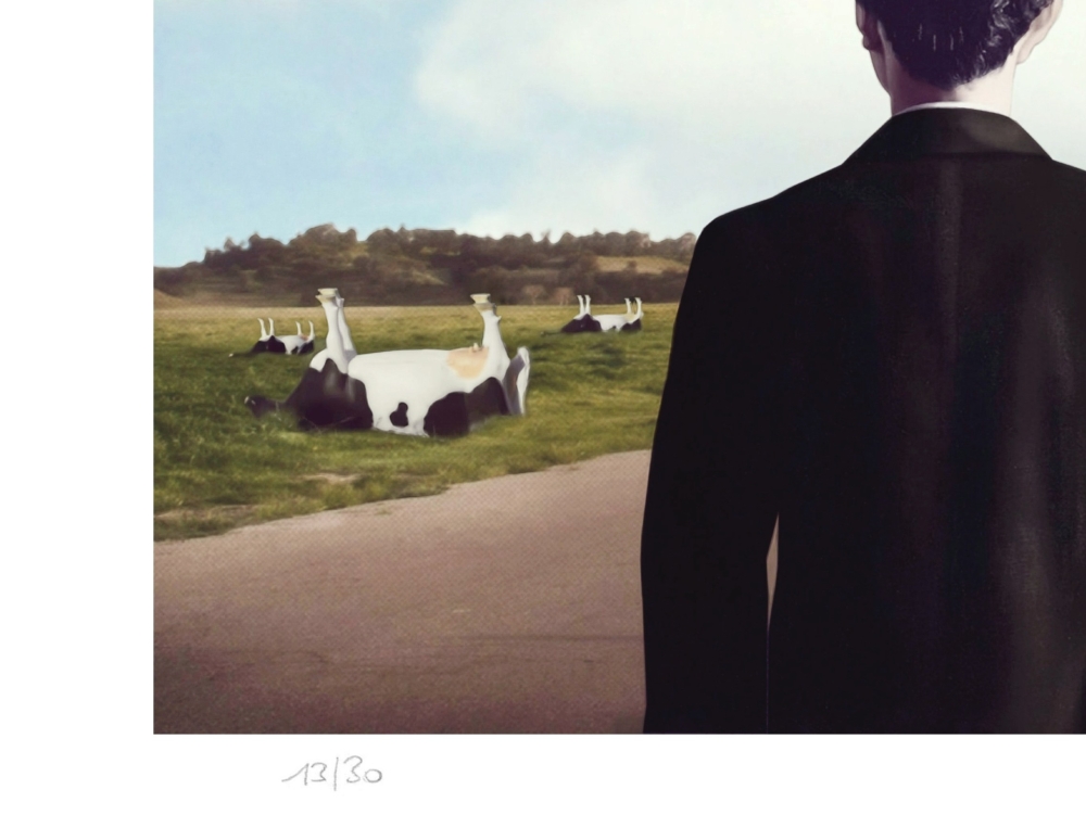 Mr Strange (Jean-Marie Gitard) est un artiste français maniant le surréalisme avec une certaine dérision. Artiste côté et confirmé, il est présent dans de nombreuses collections en France et à l'étranger. Attention aux Vaches - 2018 Giclée sur papier Hanhemühle. Epreuve 13/30 numérotée et signée à la main dans la marge blanche. Cachet de l'artiste embossé à sec. Envoyée avec un certificat d'authenticité. Dimension totale: 50 x 70 cm. Le bord blanc facilitera la mise en place de l'uvre dans un passe-partout. Neuve / jamais encadrée. Envoyée par transporteur dans un tube adapté.
