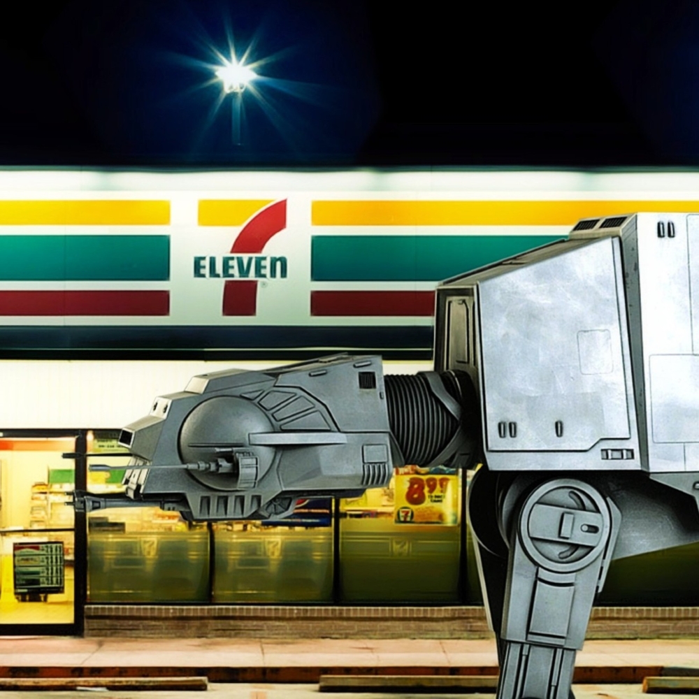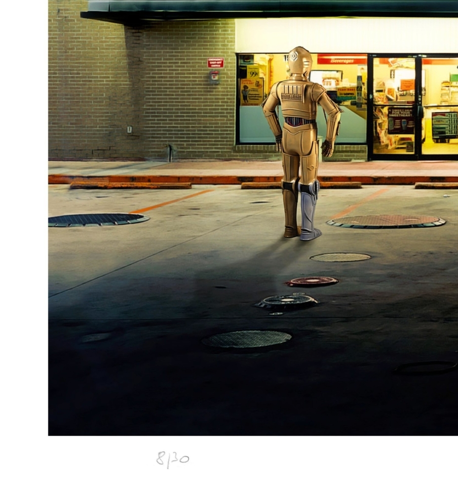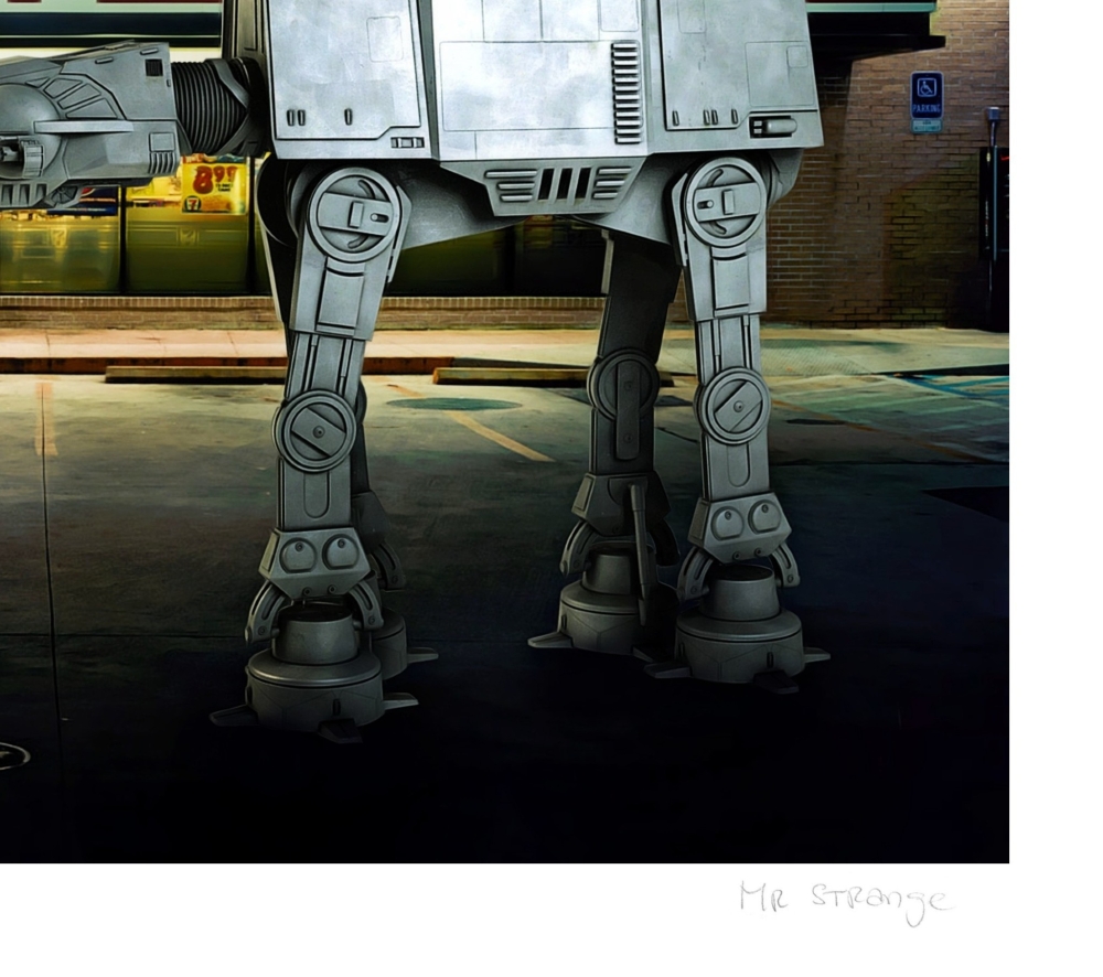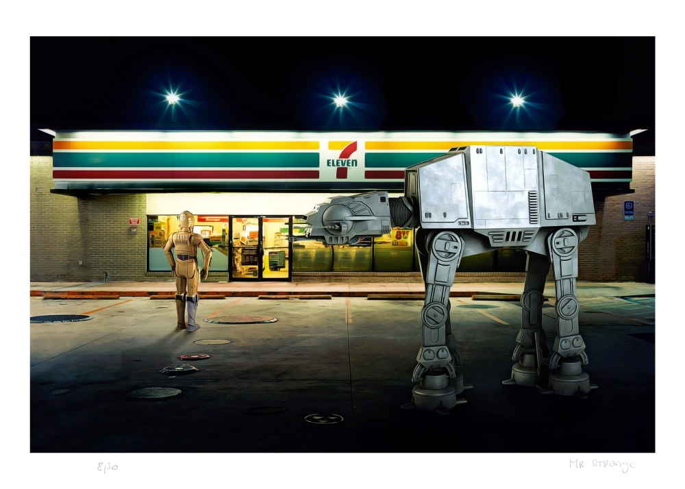 Mr Strange (Jean-Marie Gitard) est un artiste français maniant le surréalisme avec une certaine dérision. Artiste côté et confirmé, il est présent dans de nombreuses collections en France et à l'étranger. Devant le 7 Eleven Supermarket - 2023 Giclée sur papier Hanhemühle. Epreuve 8/30 numérotée et signée à la main dans la marge blanche. Cachet de l'artiste embossé à sec. Envoyée avec un certificat d'authenticité. Dimension totale: 50 x 70 cm. Le bord blanc facilitera la mise en place de l'uvre dans un passe-partout. Neuve / jamais encadrée. Envoyée par transporteur dans un tube adapté.