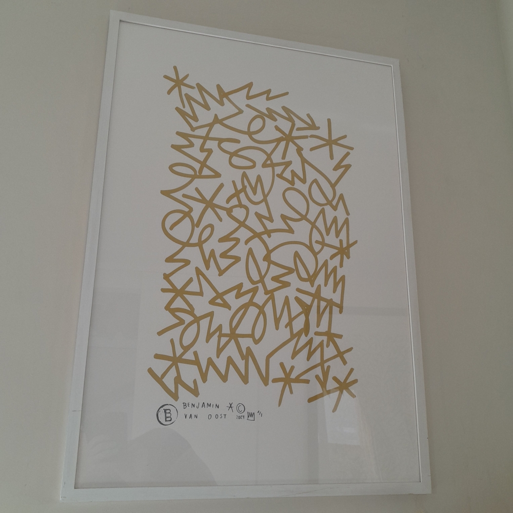Origineel werk van Benjamin van Oost. Werk handgesigneerd met certificaat. 1 van 1. Professioneel ingekaderd. Benjamin van Oost exposeerde van Tokyo tot Barcelona en is oprichter van creatief studio, studio BamBam.