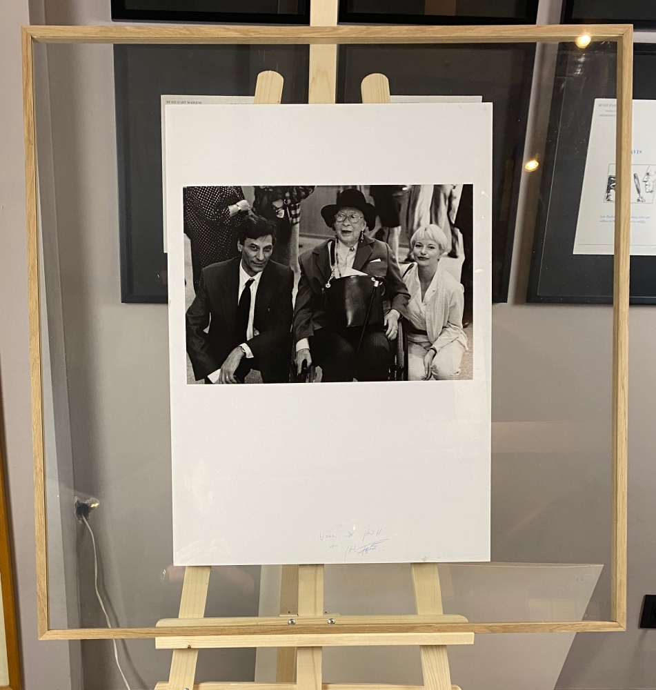Belle photo originale de Jan Fabre dédiée à Jan Hoet, 'Pour le Jan H. Van Jan Fabre'. Sur la photo, nous voyons la veuve de l'artiste franco-américain Marcel Duchamp et Jan Hoet lui-même. Cette uvre a été encadrée professionnellement des deux côtés. Provenance : Collection Jan Hoet. Cette uvre peut être récupérée ou livrée (Belgique uniquement)