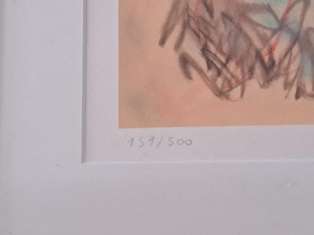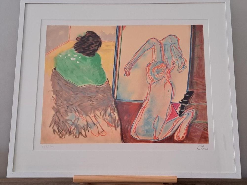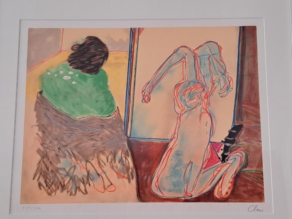 Lithographie de Hugo Claus de 1999 publiée dans le dossier d'art "Art flamand" L'uvre se situe dans une période où Hugo Claus a perdu l'abstraction ainsi que l'expressionnisme COBRA, pour se concentrer sur une figuration libre, une imagination simple. La réflexion et la poésie aux couleurs pastel prédominent. Récemment encadré professionnellement avec un passe-partout sans acide dans un cadre en bois blanc élégant.
