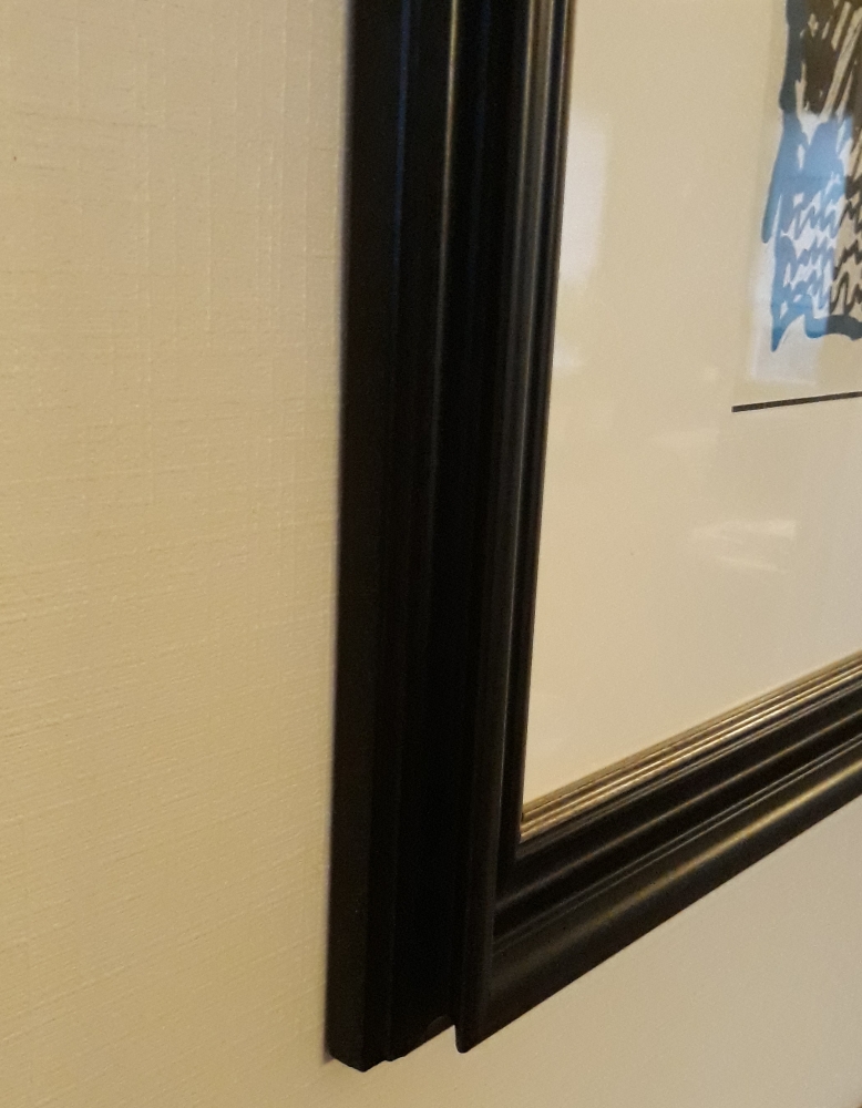 Cadre en bois noir (6 cm sur 4 cm) avec un bord doré.