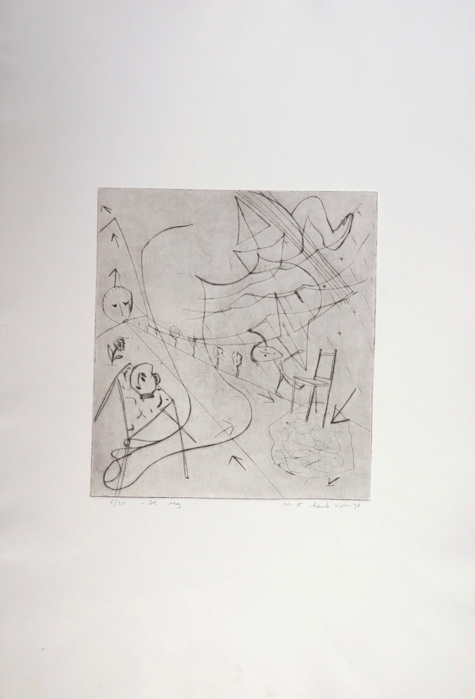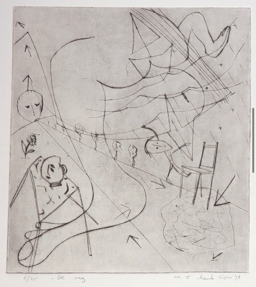 Très belle eau-forte de l'artiste hollandais Henk Visch. L'uvre est à la fois signée et numérotée au crayon sur le recto. L'oeuvre est une gravure et en très bon état. Il mesure 50 x 32 cm et l'image mesure 21 x 19 cm