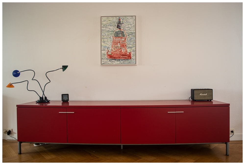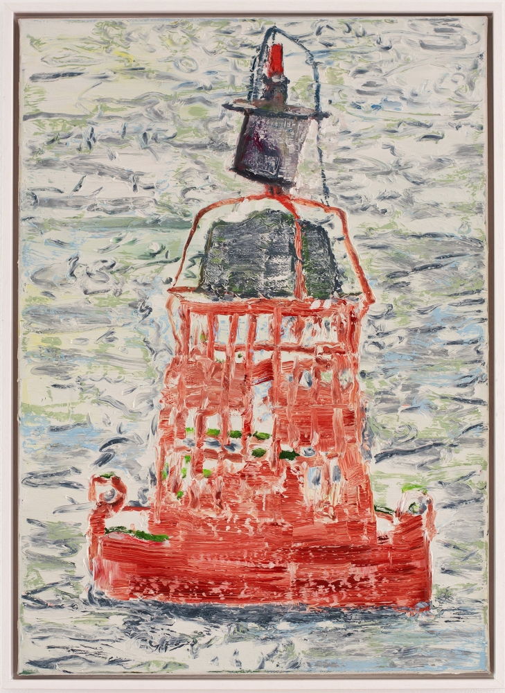 Il s'agit d'un travail basé sur une photo que j'ai faite autrefois d'une bouée, qui prend une vie propre dans la peinture. Ce n'est pas seulement une bouée mais aussi un navire de terres lointaines naviguant sur les mers du monde.