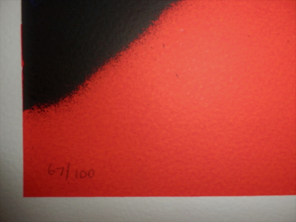 La sérigraphie couleur est signée à la main et numérotée 67/100