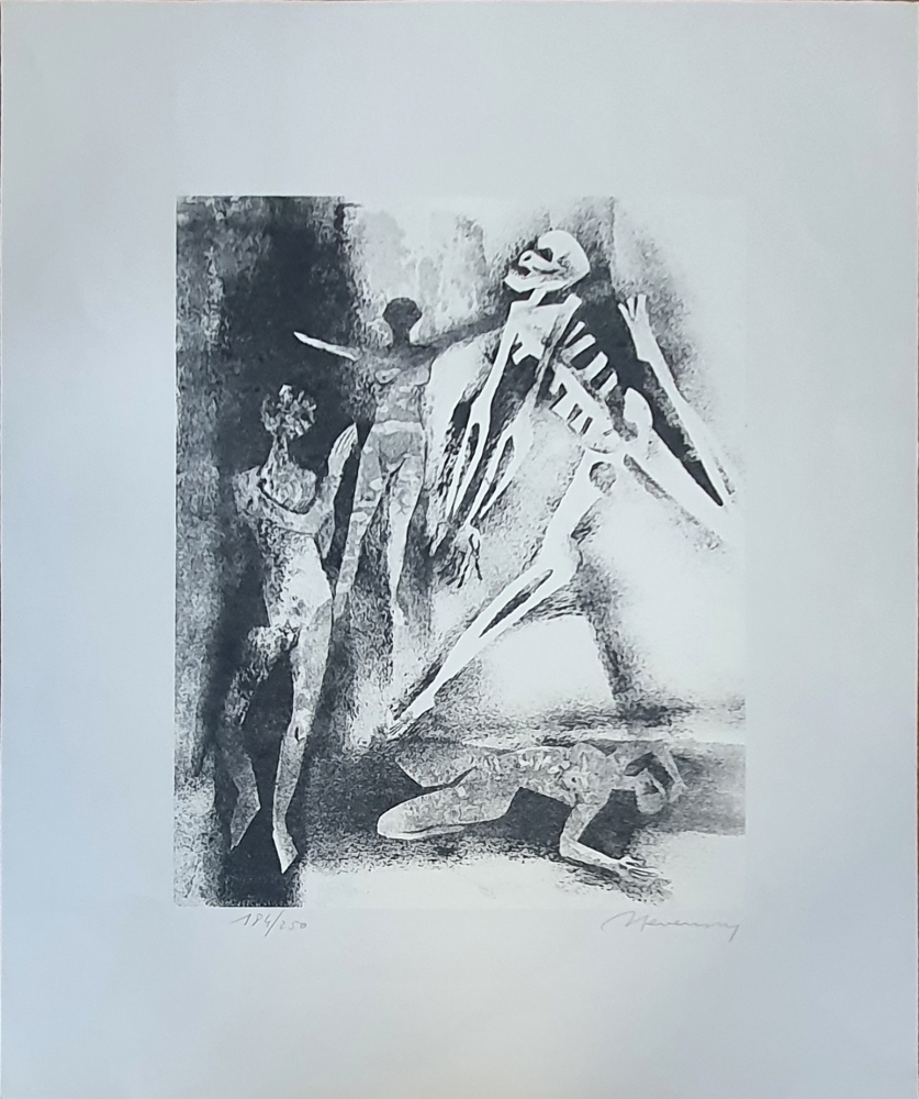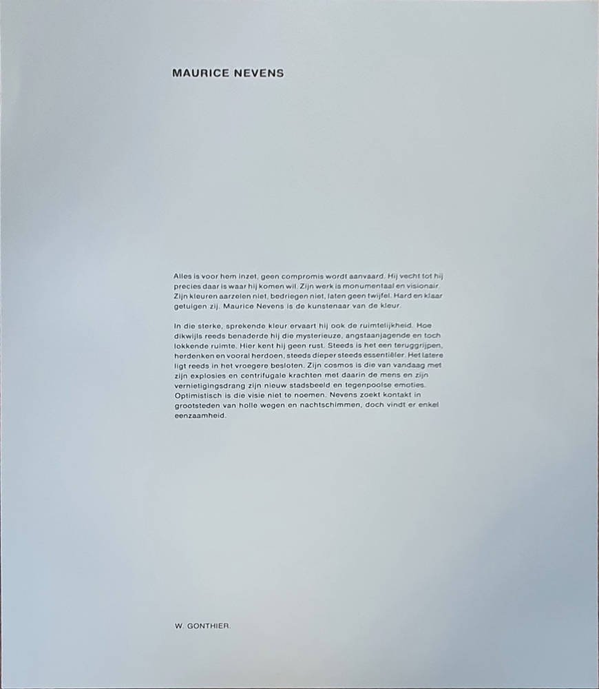 Lithographie de l'artiste belge Maurice Nevens (1929-...) avec texte d'accompagnement. Du dossier de collection '50 artistes' de 1977 avec des graphismes de divers artistes. Dimensions : 55 x 42 cm. Signé et numéroté 184/250. L'oeuvre est en bon état et n'est pas encadrée.