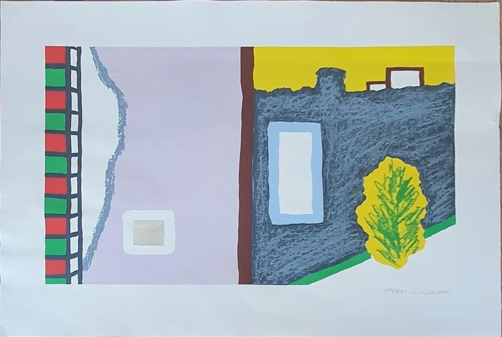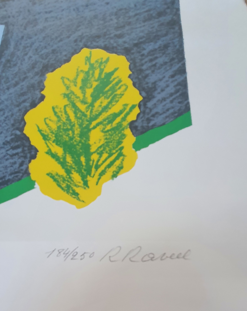 Sérigraphie couleur de l'artiste belge Roger Raveel (1921-2013) avec texte d'accompagnement. Du dossier de collection '50 artistes' de 1977 avec des graphismes de divers artistes. Dimensions : 55 x 42 cm. Signé et numéroté 184/250. L'oeuvre est en bon état et n'est pas encadrée. Ce qui rend l'uvre exceptionnelle, c'est le petit « miroir » typique qui est appliqué à l'uvre.