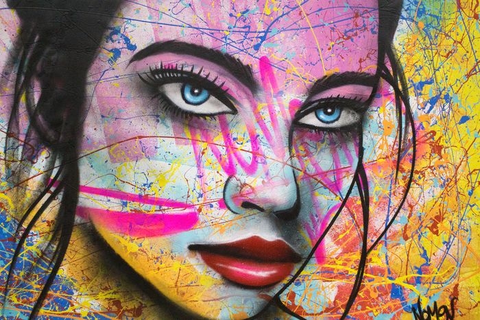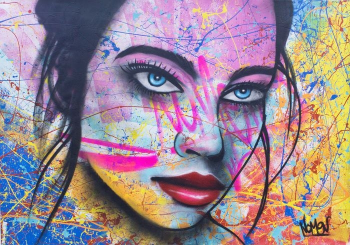Investissement idéal pour les entreprises et les particuliers. Peinture grand format Acrylique sur toile et bombe aérosol Style typique de Nomen Taille 140 cm x 104 cm La toile est livrée avec un certificat d'authenticité de "Nomen" Prix galerie : 3000 Nomen alias Nuno Reis (1974) est un pionnier du Graffiti / Street Art au Portugal, peignant depuis 1989. C'est un artiste de grande reconnaissance et de mérite, dans le panorama portugais des arts visuels, étant l'un des artistes les plus anciens et les plus prestigieux du Street Art au Portugal. De plus, l'uvre de Nomen a été choisie et mise en évidence comme essentielle pour le début du street art au Portugal à la fin des années 80 dans le livre "Tráfego, Antologia Crítica da Nova Visualidade Portuguesa" - "Traffic, Critical Anthology of the New Portuguese Visuality" publié en 2001. par Porto 2001-Capitale Européenne de la Culture . De nos jours, il est considéré comme un artiste muraliste international doté d'un énorme talent et d'une polyvalence extraordinaire, capable de se multiplier dans des thèmes allant de ses lettres de graffiti dansantes à des visages féminins captivants, expressifs et colorés, en passant par des thèmes Pop et 3D, où il a été représenté dans plusieurs magazines, sites Web, livres et publications internationales qui ont montré les uvres de Nomen au cours de sa carrière de 30 ans de graffiti. En 2010, le livre « 3D Street Art », aux éditions Tectum, Belgique mettait en lumière son travail avec 6 pages dédiées. Ce livre vous présente quelques-uns des 25 artistes les plus remarquables du passé, du présent et du futur du street art 3D dans le monde, ainsi que des artistes comme Roa, Blue Sky, Dan Witz, Edgar Mueller, Daim