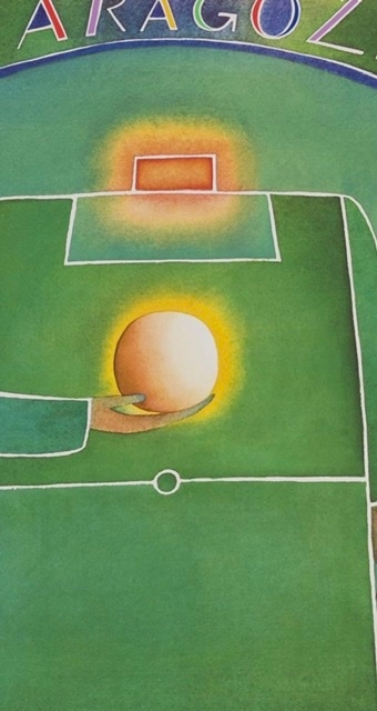 Large lithograph by Jean-Michel Folon. The work was made for the football world cup in Spain. Signed by hand lower right and numbered lower left in pencil in an edition of 150 copies. Perfect condition