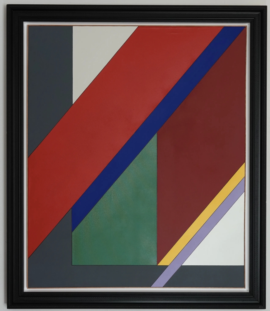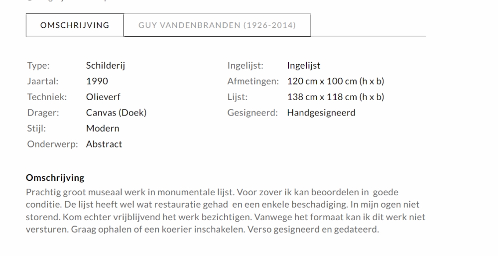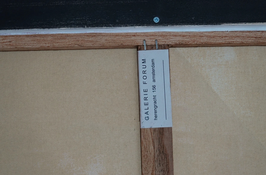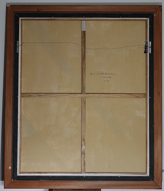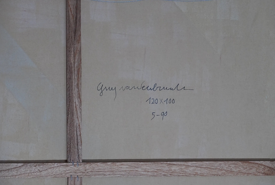 Musée, uvre caractéristique et impressionnante de Guy Vandenbranden, huile sur toile, de 1990. Signé et daté au dos, également avec autocollant "Brafa". Le travail est également encadré dans un cadre noir, un coin montre des dommages minimes (pas dérangeants).