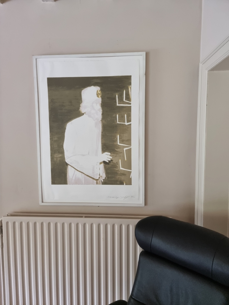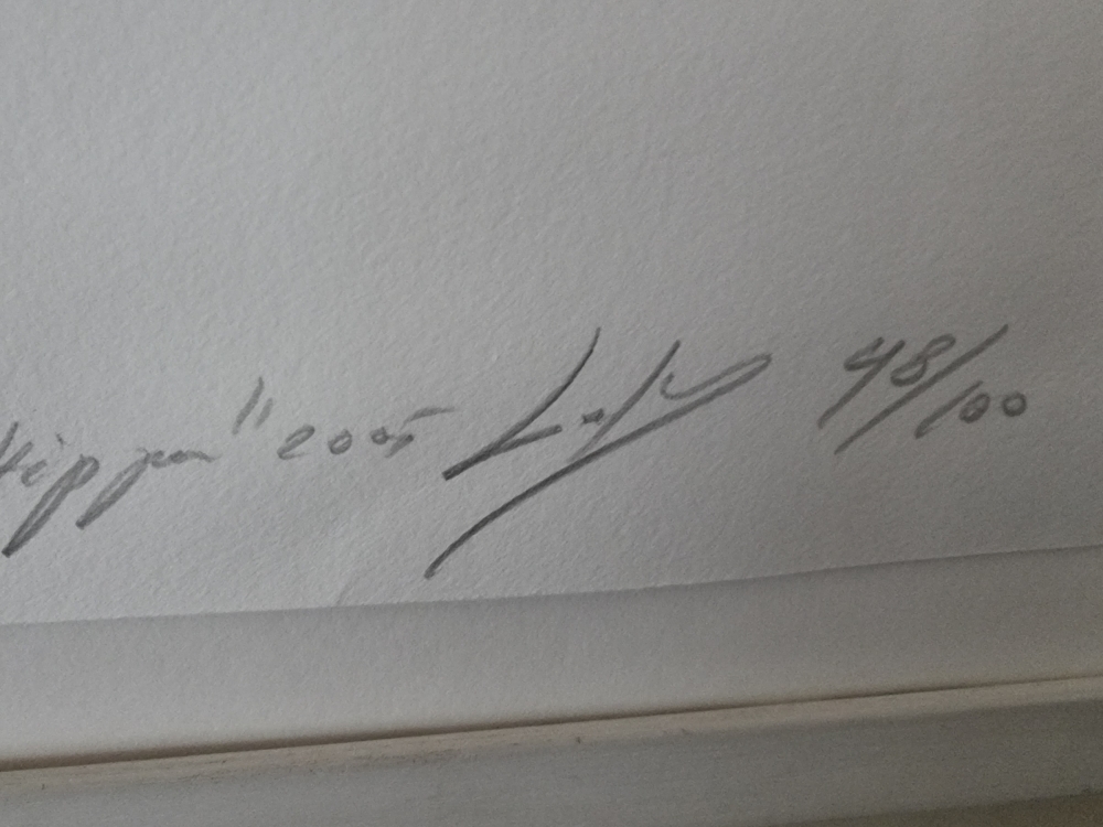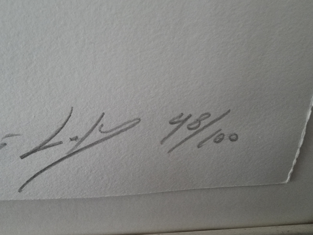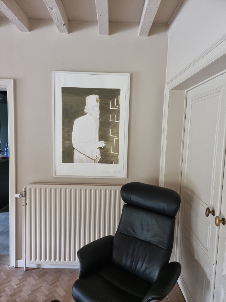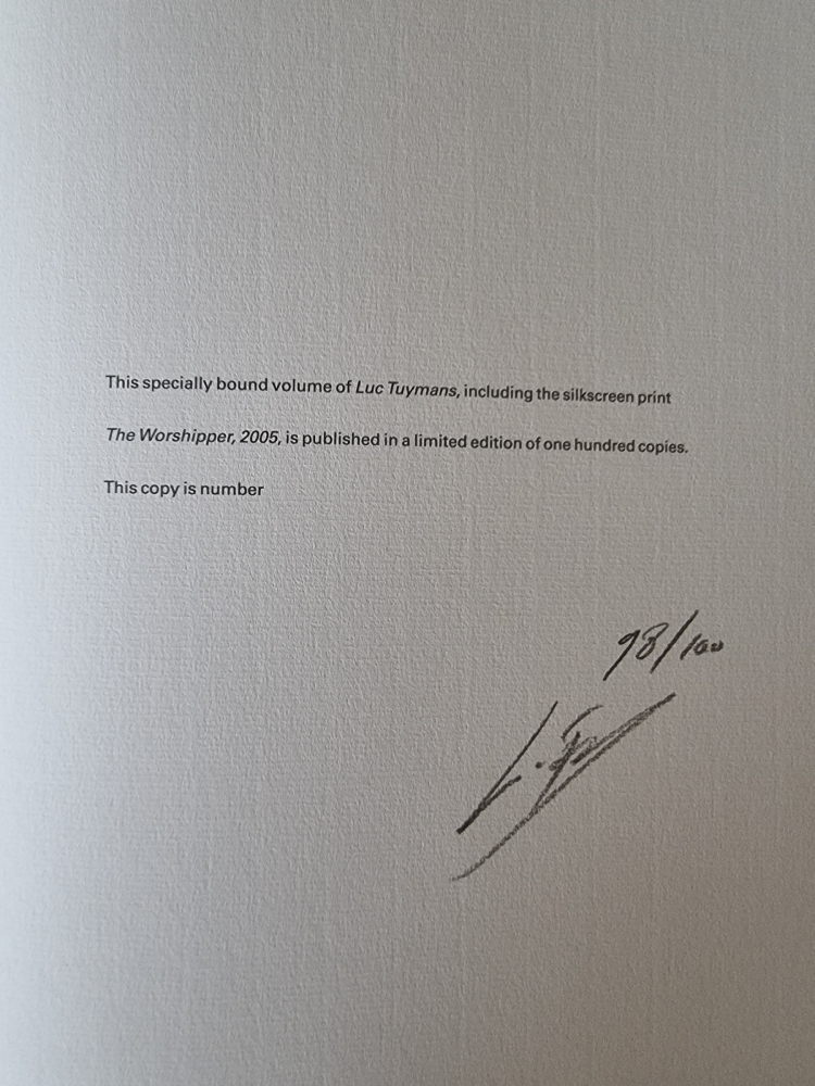 Luc Tuymans - L'adorateur Lithographie en 8 couleurs. Signé et numéroté par l'artiste au crayon. Tiré à 100 exemplaires, celui-ci est le numéro 98. Imprimé par Roger Vandaele, Anvers sur BFK Rives 270 g/m2. Attention! Le livre "Luc Tuymans" est également offert avec cet ouvrage. Ce livre particulièrement volumineux de plus de 260 pages (31 X 27 cm) + étui de protection est également signé Tuymans. La combinaison de la lithographie + livre est très rare. L'uvre ne pourra être récupérée qu'à la demande et ne sera pas envoyée. Actuellement l'oeuvre est montée sur châssis, sans vitre. Cependant, le travail peut être facilement retiré.