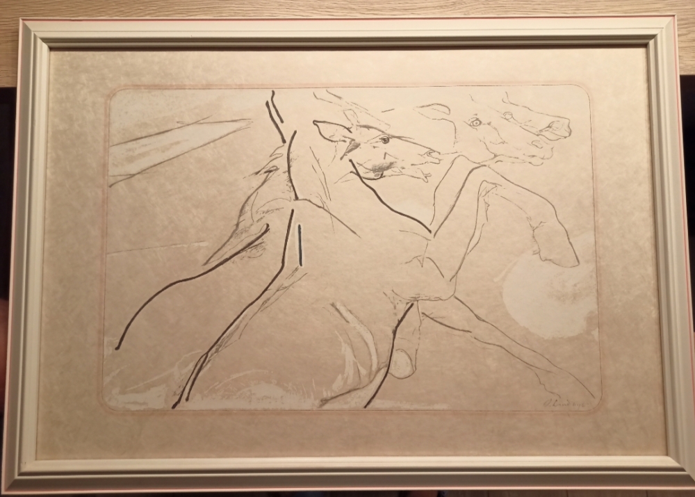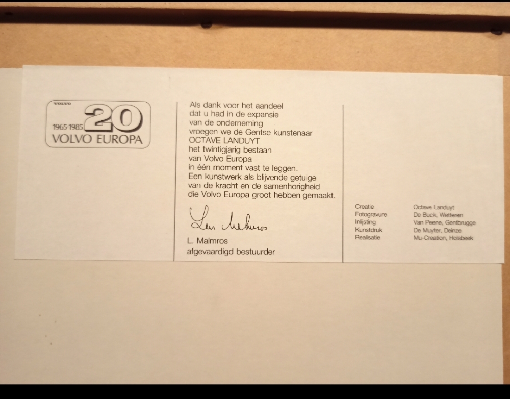 Lithographie "Chevaux" d'Octave Landuyt. Fabriqué pour les 20 ans de Volvo en 1985. 55 cm sur 37 cm. Signé par l'artiste. Octave Landuyt est un peintre flamand, sculpteur, créateur de bijoux, graphiste, designer industriel et créateur de décors, de costumes, de textiles, de meubles et de tapis. Il a reçu divers prix et récompenses et est représenté dans de nombreux musées et collections d'art nationaux et internationaux.