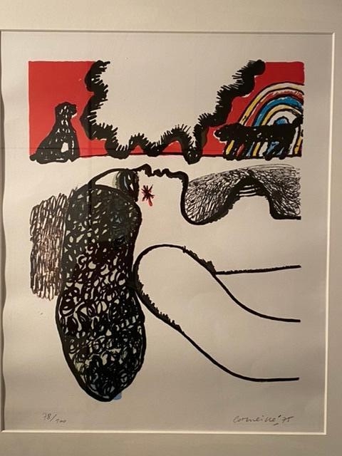 Prachtige litho van Corneille. Gesigneerd en genummerd in potlood. In zeer goede staat. Op 10 exemplaires de 1975. Cornelis Guillaume van Beverloo, beter bekend als Corneille was een Nederlandse kunstschilder en een van de leden van Cobra