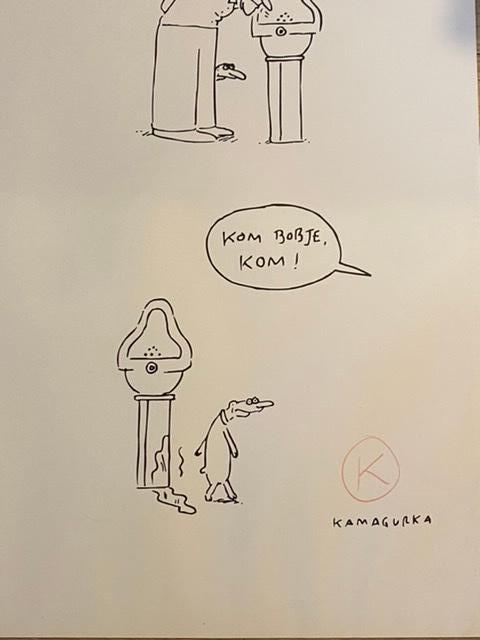 Très belle et comique sérigraphie de Kamagurka. Signé et numéroté à la main au crayon. Lithographie de Kamagurka à l'occasion de l'exposition d'art moderne Duchamps dans laquelle un urinoir était présenté comme objet d'art L'ouvrage est en bon état. Quelques très petites taches qui ne sont pas dérangeantes.