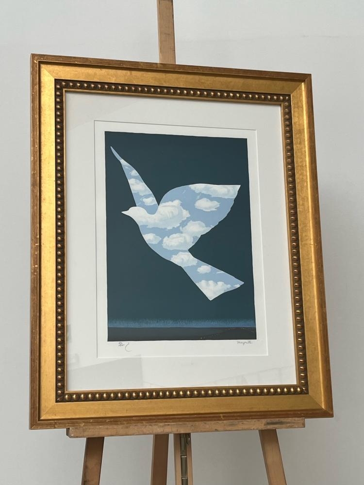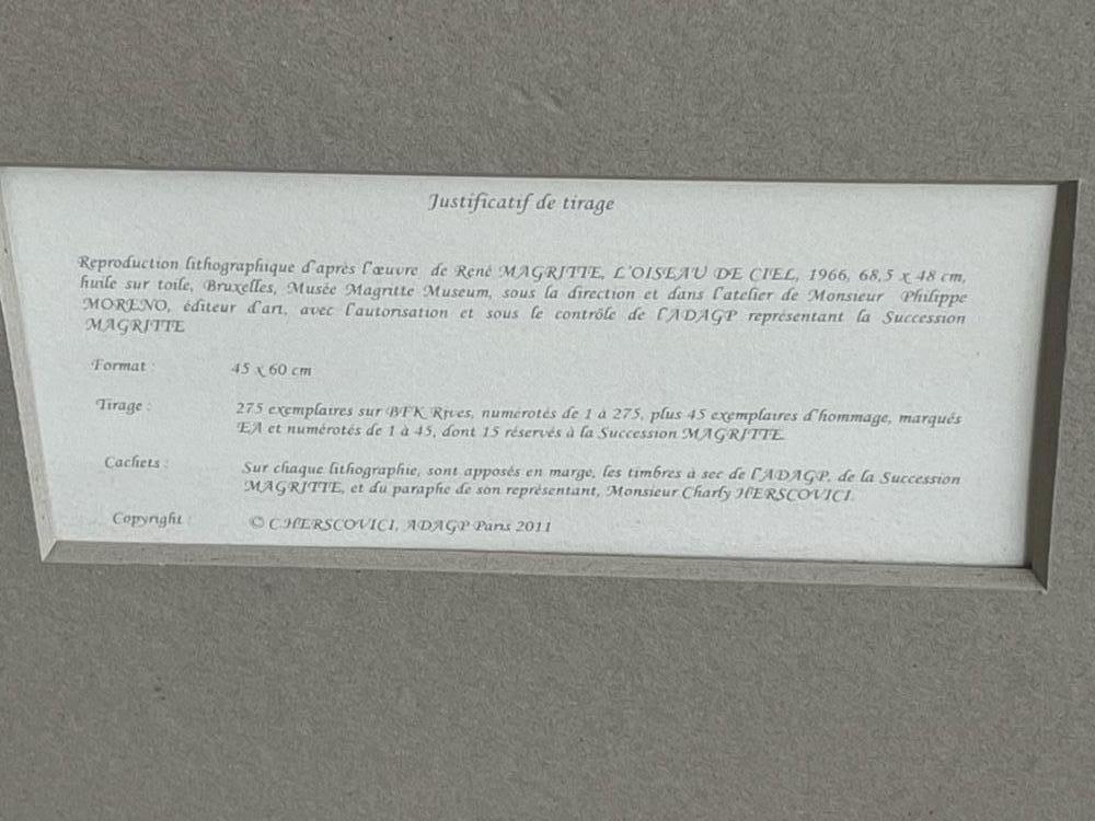 "l'oiseau de ciel" 1966 ex. 83/275 original signé par C. Hersovici Litho est encadrée et en très bon état il y a 2 petits tampons au recto et 1 gros tampon au verso avec description