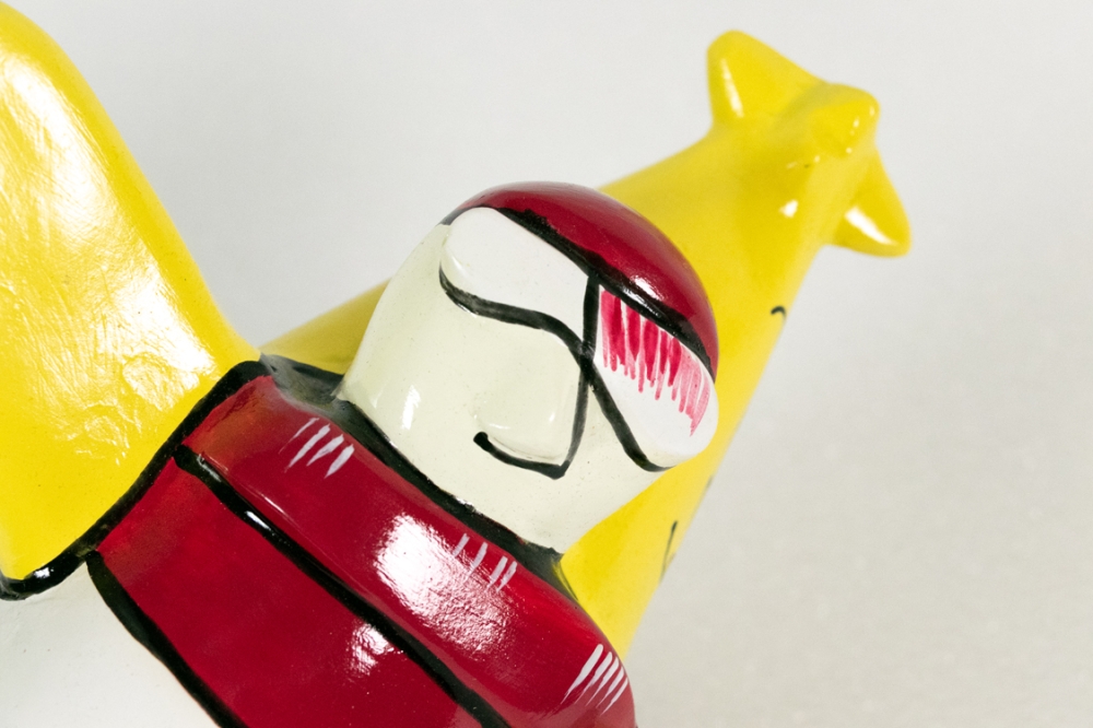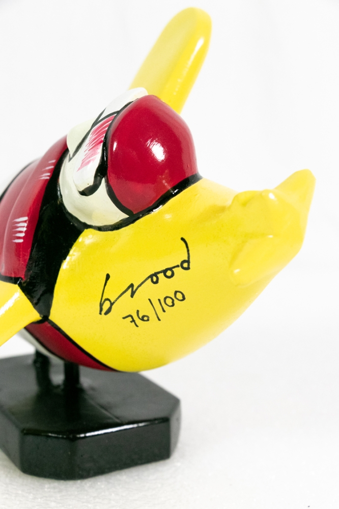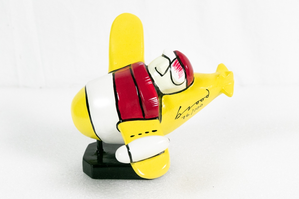 Petite sculpture, limitée à 100 exemplaires. Red Baron est une sculpture basée sur une peinture originale d'Herman Brood. C'est un avion coloré avec un passager, représenté en jaune vif, rouge et blanc. Les détails frappants de ce travail incluent la charge utile d'apparence dangereuse qui repose sur l'aile de l'avion et les lunettes d'aviateur sur la tête du pilote.
