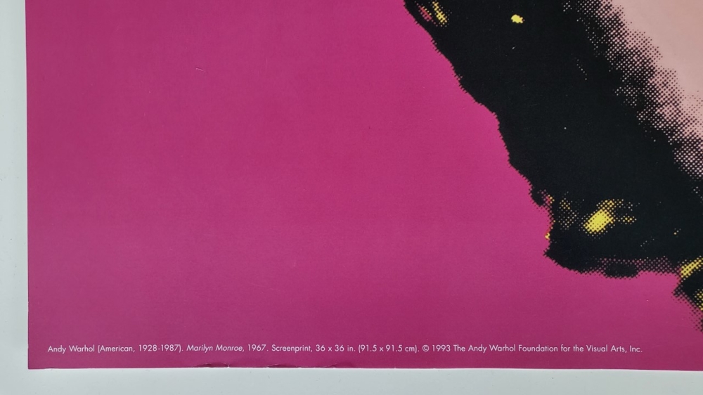 Publié en 1993 par Achenbach Art Edition, Düsseldorf et chez Neues Publishing Company, New York. Tous les droits sont réservés. Imprimé aux Pays-Bas. Andy Warhol (Américain, 1928-1987). Marilyn Monroe, 1967. Copyright The Andy Warhol Foundation for the Visual Arts, Inc. Empreinte autorisée par la Fondation Andy Warhol pour les arts visuels, le sceau AW est situé dans le coin inférieur droit. Titre - Marilyn, rose (grand) Artiste - Andy Warhol Taille - 38" x 38" pouces (97cm par 97cm) État : (A-) Proche de l'état neuf Sera soigneusement emballé et expédié assuré avec track & trace