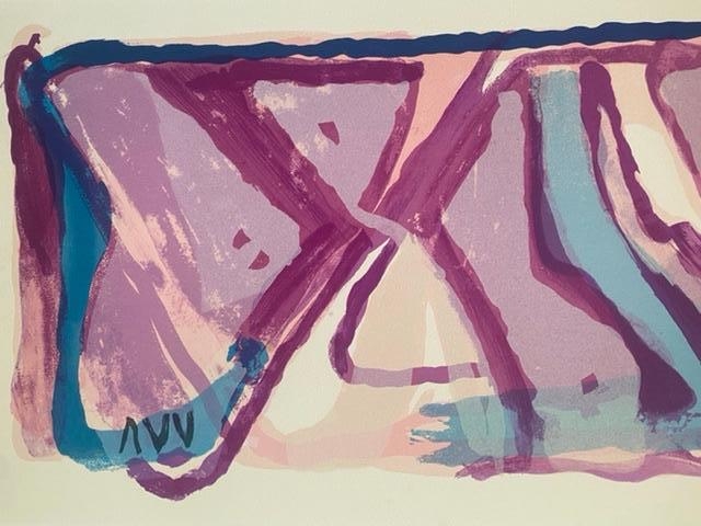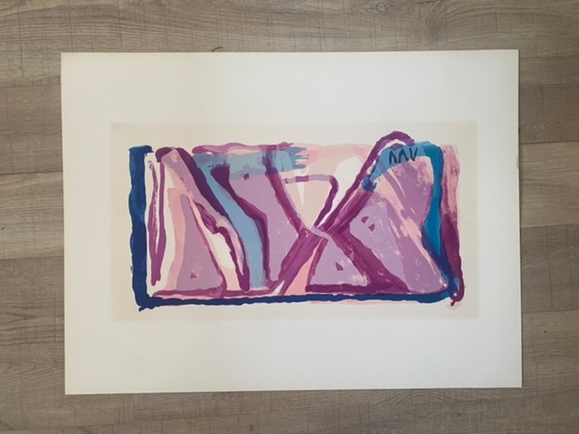 Lithographie en couleurs de Bram Van Velde. Estampe signée. Petite décoloration à droite, mais cela ne se voit pas lors du cadrage. Abraham Gerardus (Bram) van Velde (Zoeterwoude-Rijndijk, 19 octobre 1895 - Grimaud, France, 28 décembre 1981) était un peintre néerlandais.