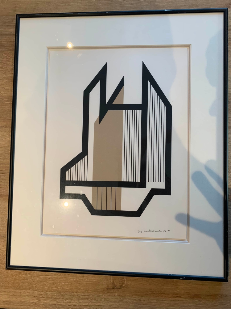 L'ouvrage est en très bon état. Le cadre présente de légers signes d'utilisation. Il s'agit d'une uvre de Guy Vandenbranden intitulée 'Cathédrale de Malines'. Il s'agit d'une édition de 100 pièces, dont cette pièce porte le numéro 7.