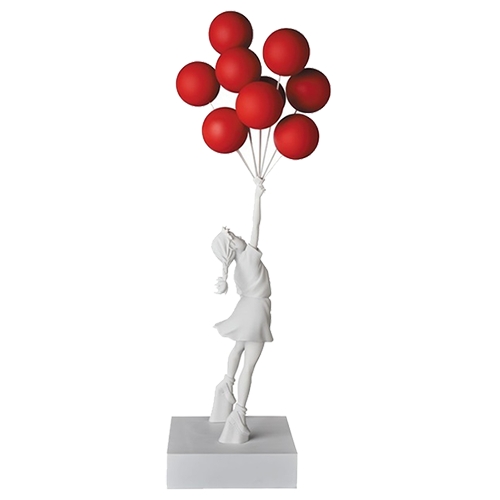 Artist : Banksy (After) Title : Brandalism Girl with Balloons Black Medicom Toy 2017 Limited Edition Statuette Size : 57 cm Super sculpture rare de l'artiste Street Art Banksy Sculpture White and Red