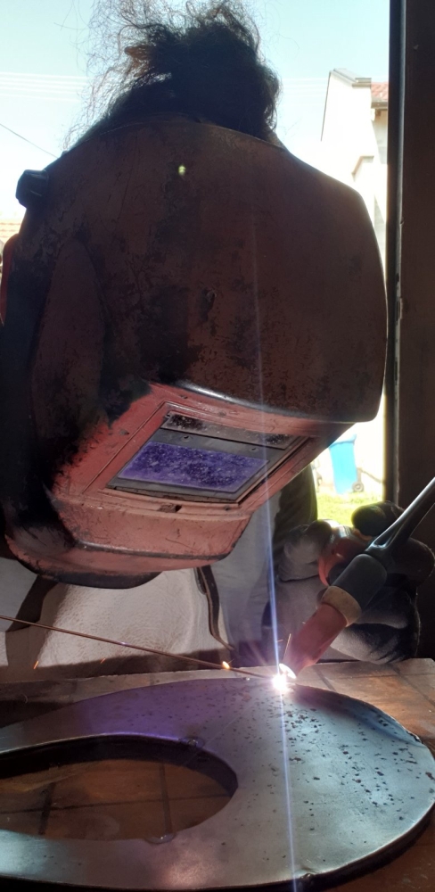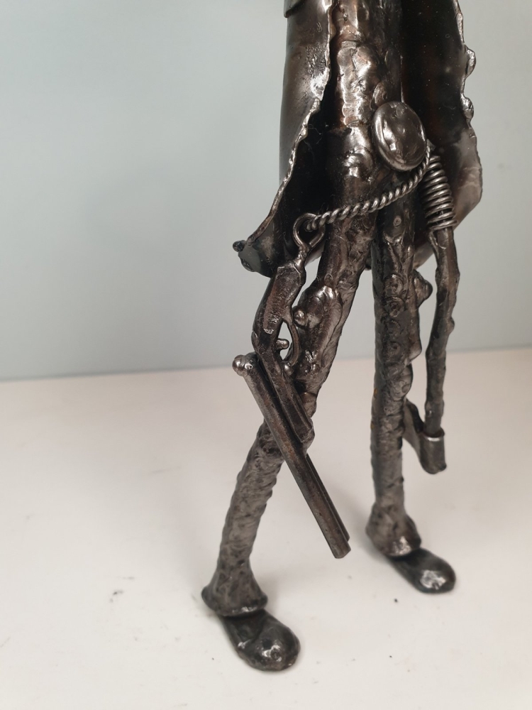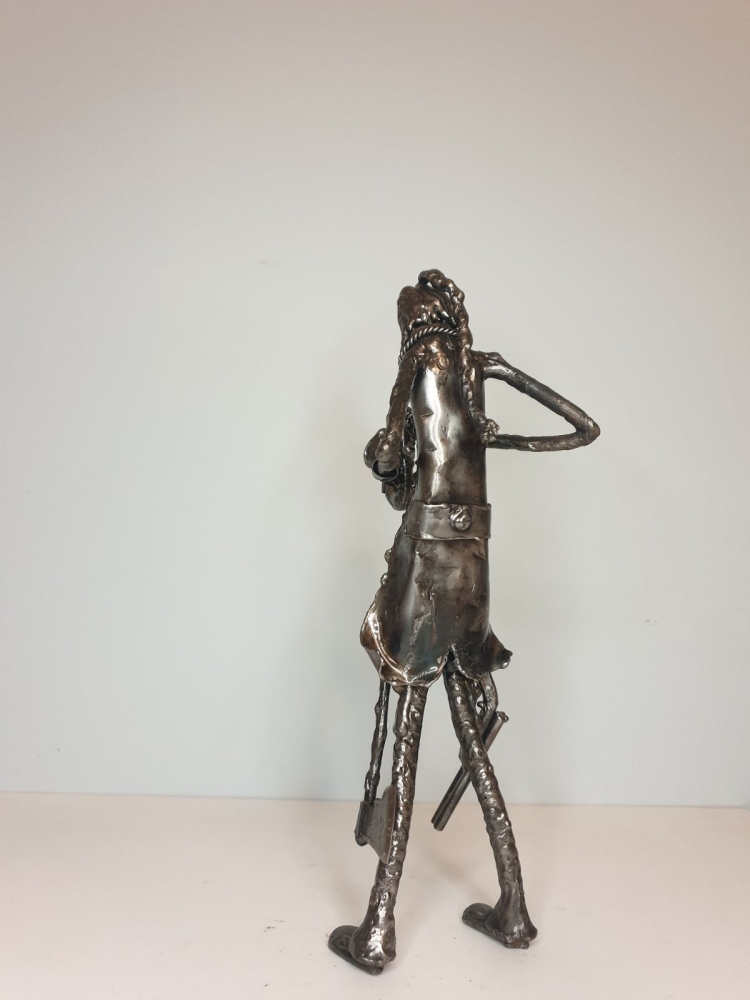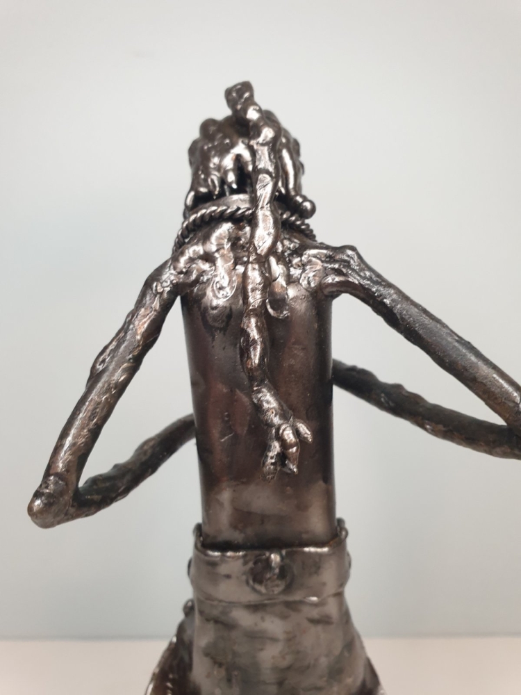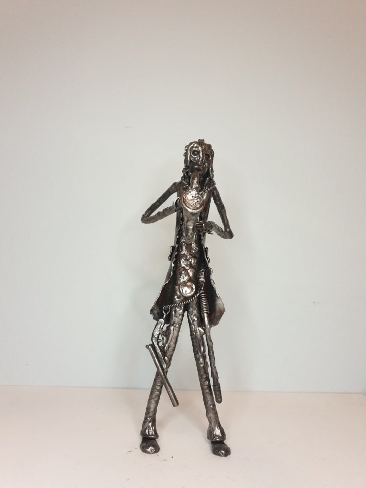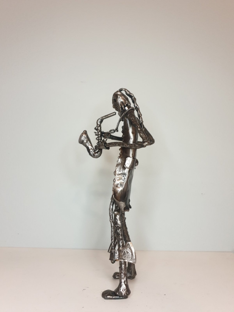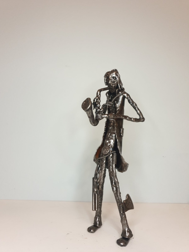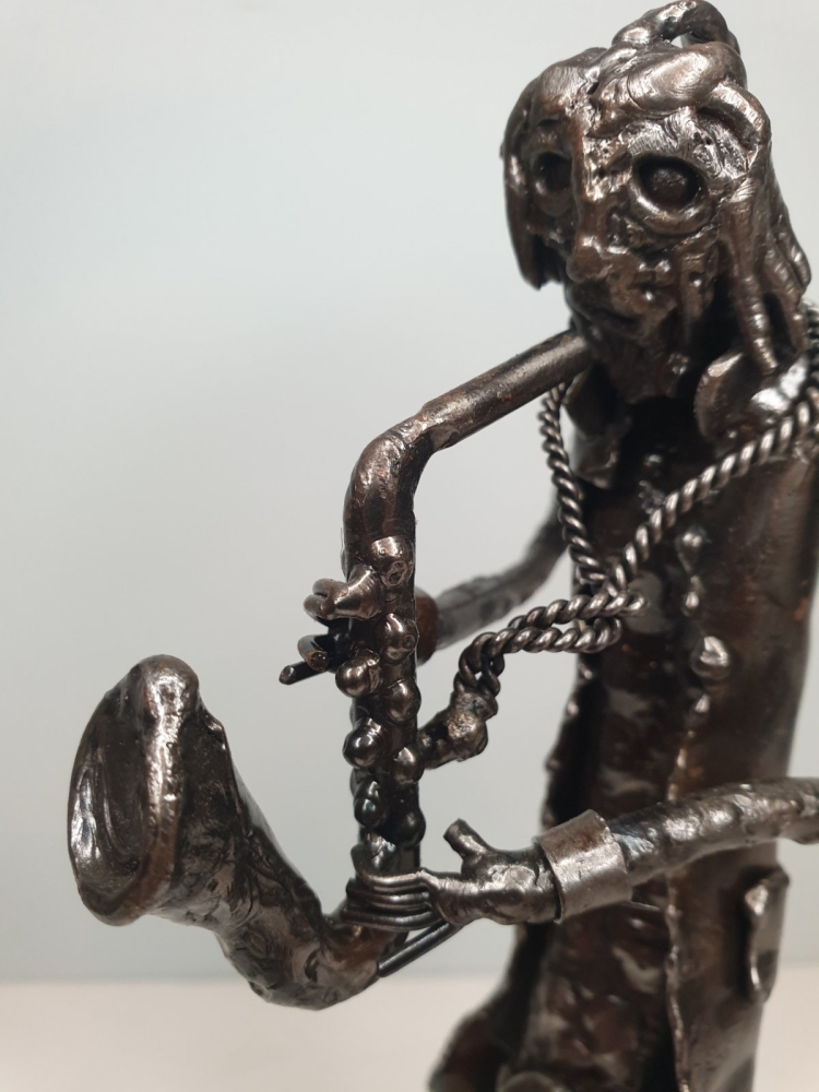 Post-Apocalyptic Sax Player- metal sculpture, welding and forging, it is not a casting... Material: carbon steel Color: metal, Dimensions: 240x90x90mm, 488g, only for indoor use..... One of a kind work Unique work, comes with a certificate of authenticity. IMPORTANT NOTE: SHIPPING TO THE EU ONLY - NO SHIPPING TO NON-EU COUNTRIES. Tihomir Sarajcic is owner of S-art a Croatian craft studio/workshop that composes sculptures with welded and painted iron/ metal and wall art. Exhibitions since 2015 in city library Slavonski Brod. The S-art studio also participate on art festivals..... www.s-art.hr