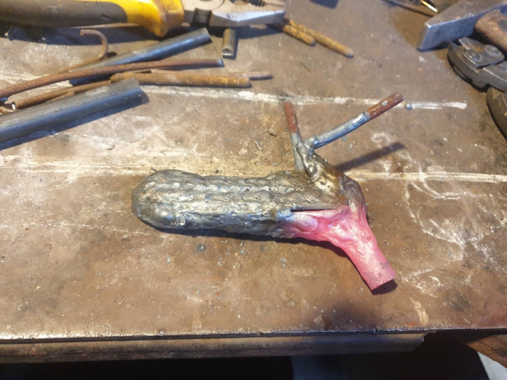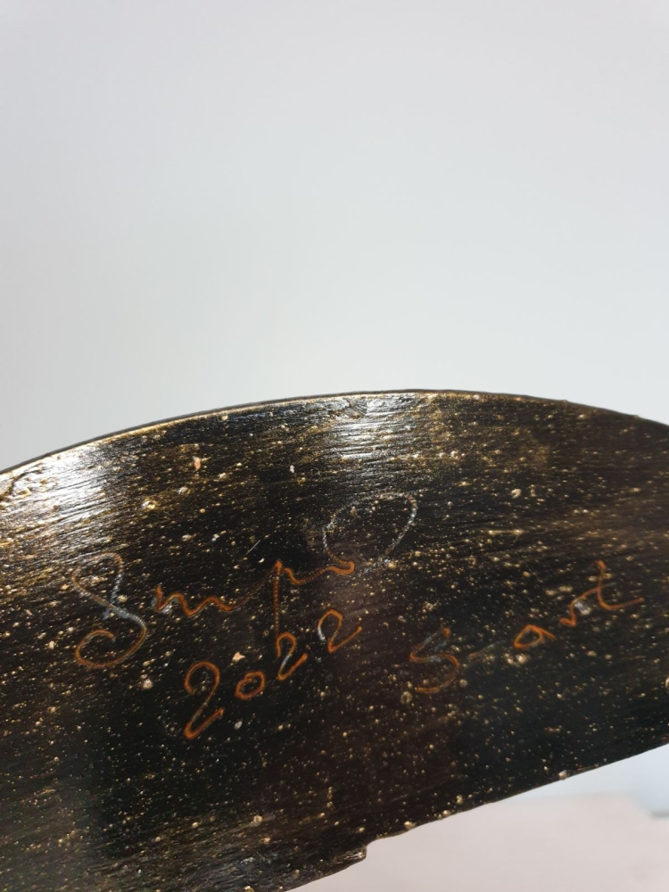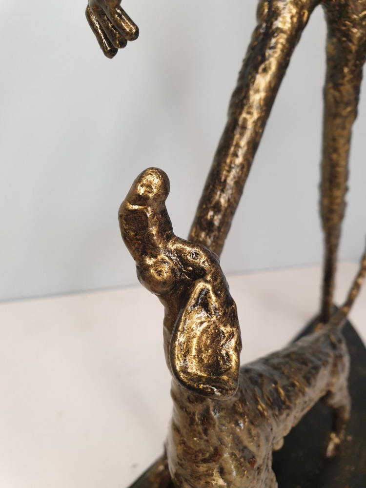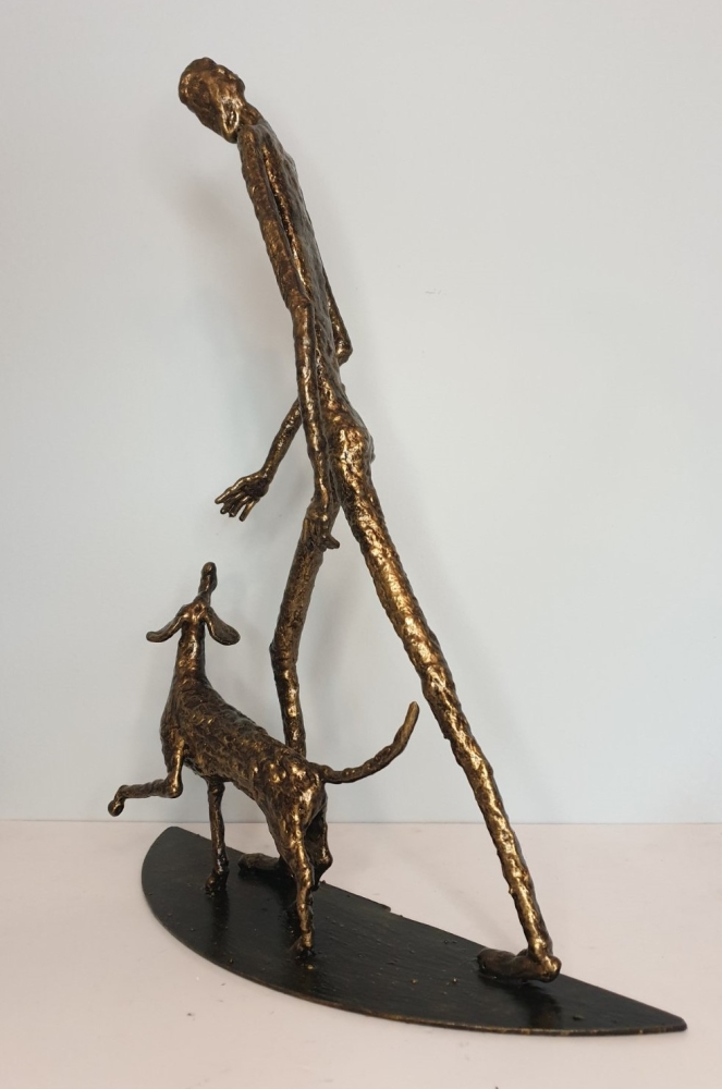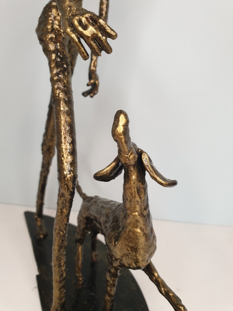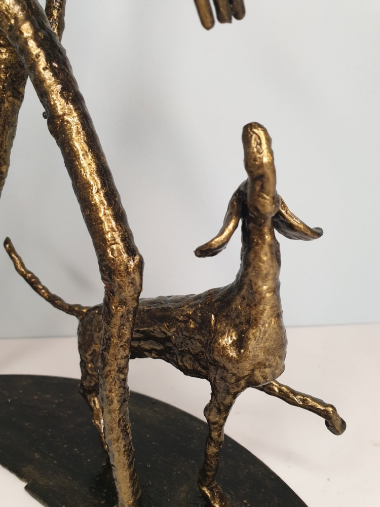 Friends, man with dog - metal sculpture, welding and forging, it is not a casting... Material: carbon steel Color: black with golden wax, Dimensions: 360x290x100mm, 1510g, only for indoor use...... One of a kind work Unique work, comes with a certificate of authenticity. IMPORTANT NOTE: SHIPPING TO THE EU ONLY - NO SHIPPING TO NON-EU COUNTRIES. Tihomir Sarajcic is owner of S-art a Croatian craft studio/workshop that composes sculptures with welded and painted iron/ metal and wall art. Exhibitions since 2015 in city library Slavonski Brod. The S-art studio also participate on art festivals..... www.s-art.hr