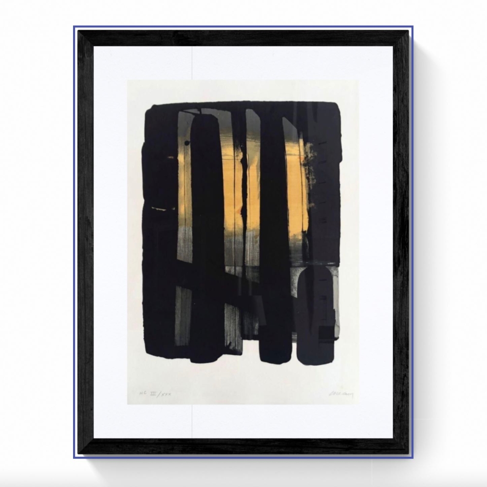 Pierre Soulages 1919-2022 Titre : Untitled Signed in plate and Numbered Certificate of editing 28 x 38 cm Arches paper Comes unframed Stamped Delivered from France with tracking number and insurance
