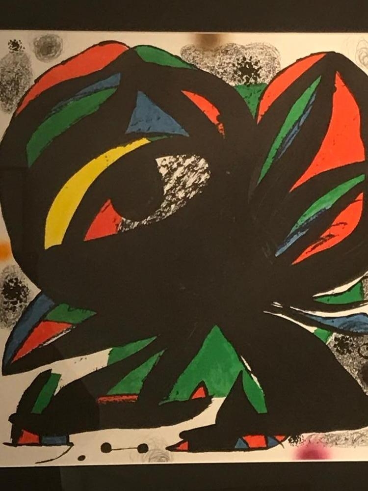 Affiche de Miro de 1975 Encadré avec du papier passe-partout et un cadre assorti Parc de Montjuic Barcelone.