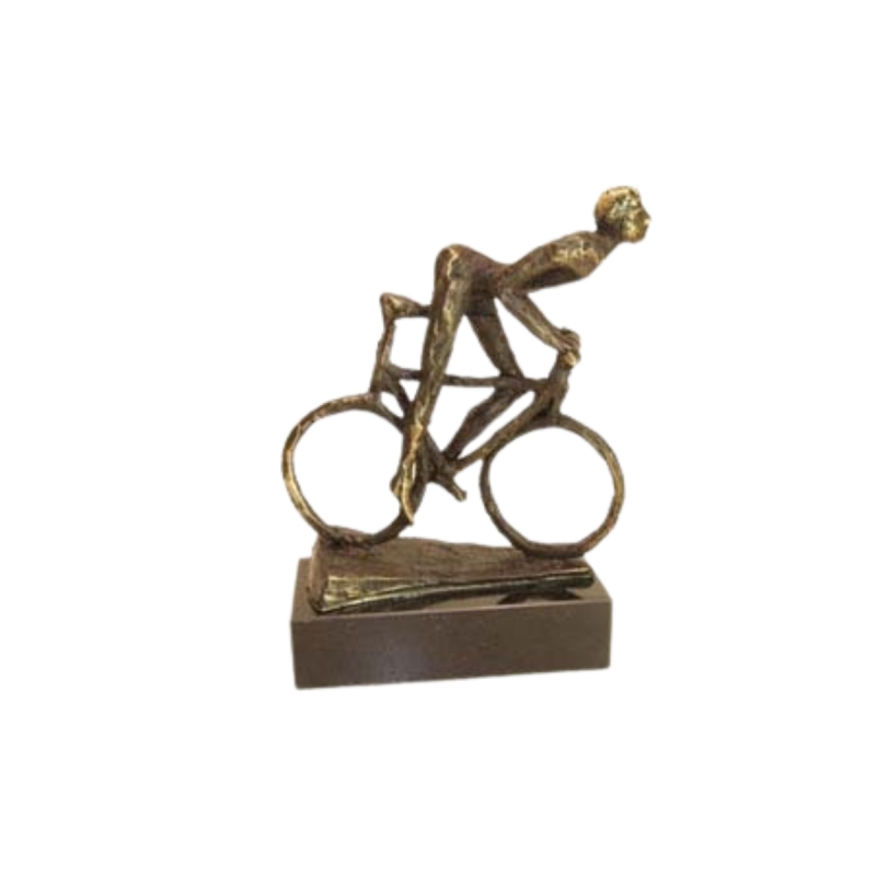 Prachtige sculptuur op een marmeren sokkel van de bekende Nederlandse kunstenaar Ger van Tankeren. Het sculptuur is vervaardigd van een tinlegering en daarna verbronsd. De hoogte van het sculptuur incl marmeren sokkel is 18 cm. Het werk verkeert in nieuwstaat.