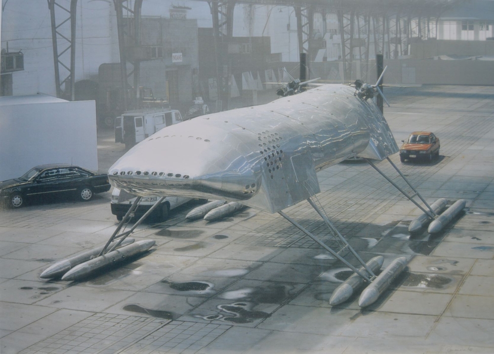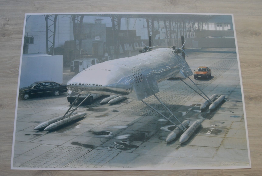 Groot formaat offsetlitho - Beperkte oplage - 2000 Offsetlithografie/ tentoonstellingsaffiche uitgegeven door Ronny Van de Velde (Hayward Gallery & Musée Jean Tinguely) Ontwerp: foto naar het werk 'Scotch Gambit' van Panamarenko voor zijn tentoonstelling bij Ronny van de Velde in 2000 Afmetingen: 116 cm x 83 cm Gesigneerd in de druk, rechts onderaan. Conditie: goede staat. Afbeelding wordt in vele boeken van Panamarenko afgebeeld. Wordt aangetekend verzonden in een ruime koker.