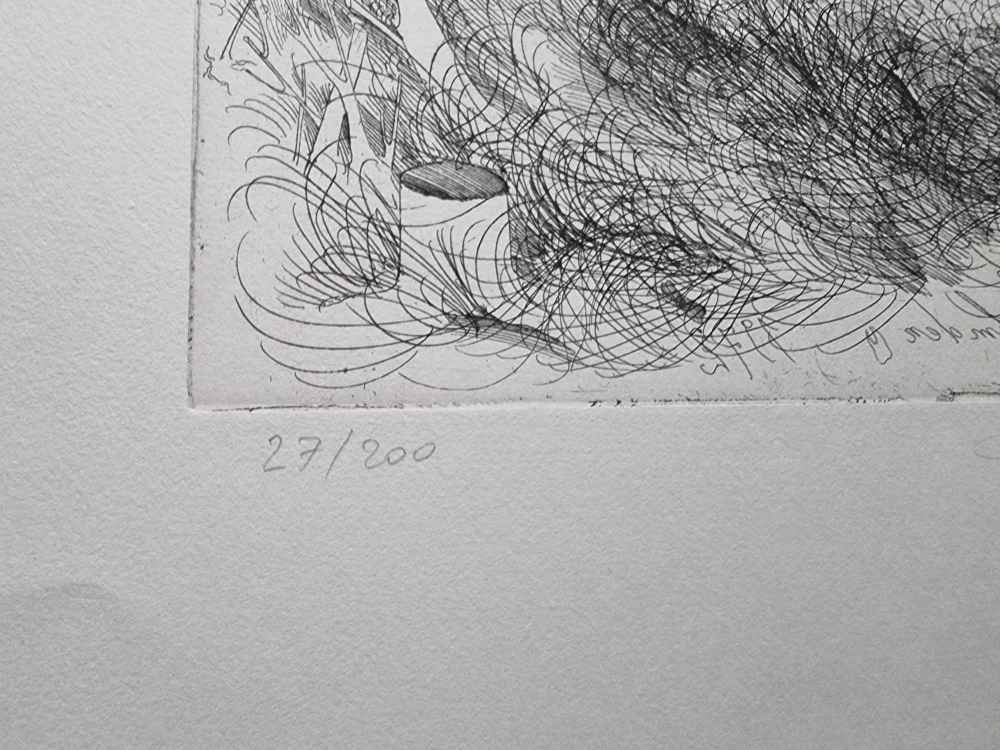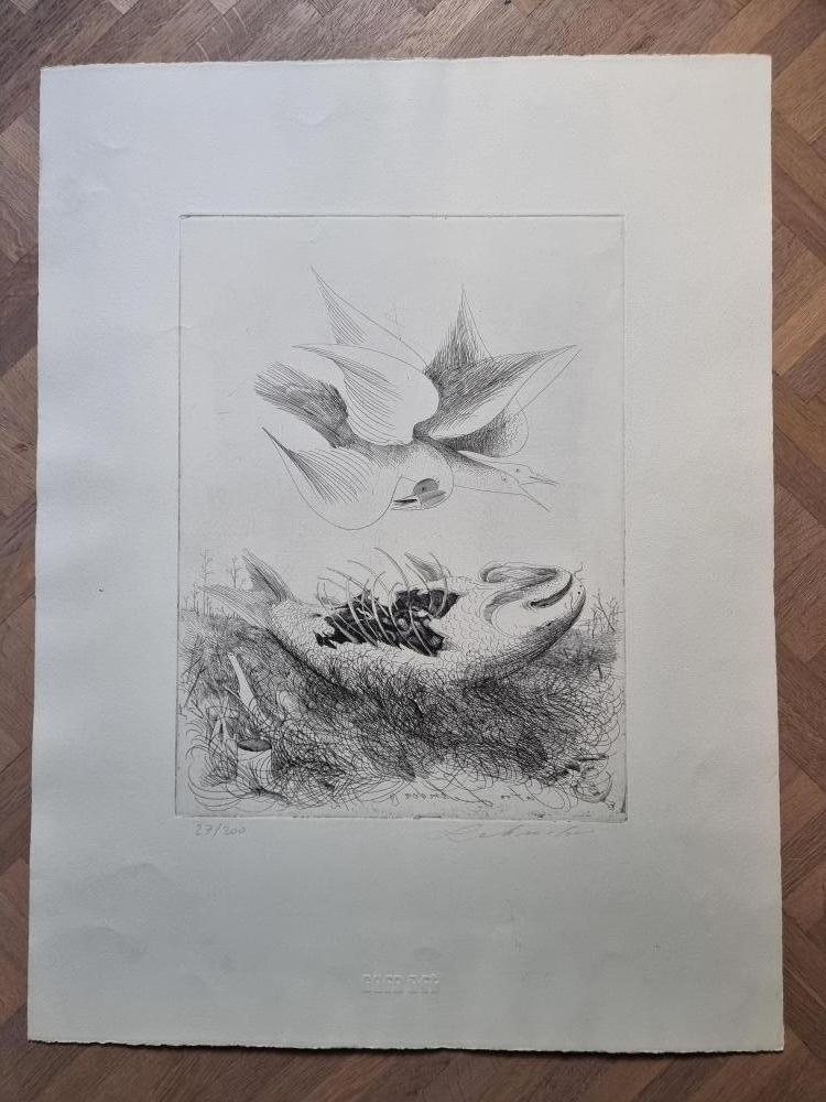 Oeuvre (gravure) de l'artiste autrichien Anton Lehmden, de 1972. Intitulé : Möwe und Fish. Signée et numérotée au crayon par l'artiste (numéro 27 sur 200) Non encadré. Bon état.