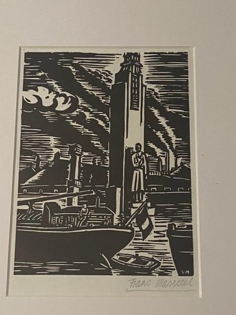 Très belle gravure sur bois de Frans Masereel. Signé et encadré à la main. Frans Laurent Wilhelmina Adolf Lodewijk Masereel était un graphiste, sculpteur sur bois, peintre et dessinateur belge. Il est considéré comme l'un des artistes graphiques les plus importants du XXe siècle