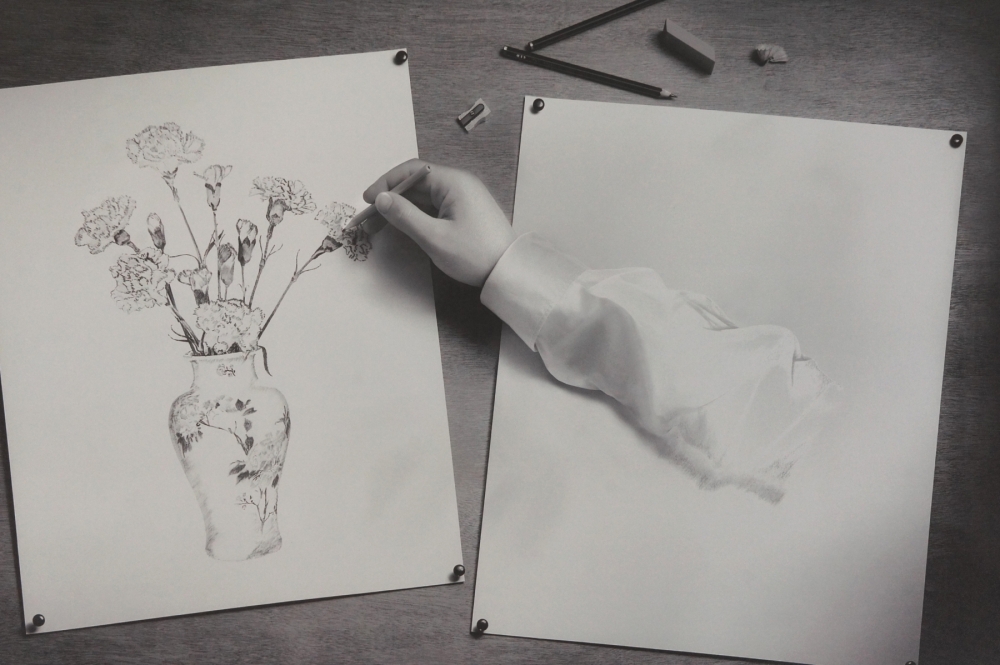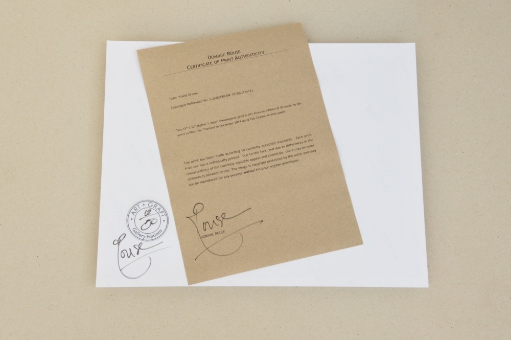 ● Inspiré par un chef-d'uvre d'illusion dimensionnelle - la lithographie de MC Escher de 1948, "Drawing Hands". ● "C'est incontestablement un maître technicien. Si tel n'était pas le cas, son travail n'aurait pas le pouvoir de persuasion qu'il possède. C'est son incroyable finesse technique qui nous permet de croire à son imagerie autant que d'en être émerveillé. Comme un grand violoniste ou pianiste sa technique ne gêne pas ses idées; la technique nous libère par son brio." - Mark Fields, collectionneur USA ● Tirage chromogénique sur papier mat Fuji's Crystal Archive ● Taille du papier - 15" x 12" (38 x 30 cm) ● Taille de l'image - 13" x 10" (33 x 25 cm) ● Taille de l'édition - 250 ● Signé à l'encre noire au dos ● Cachet de galerie numéroté ● Intitulé sous l'image ● Certificat d'authenticité d'impression signé ● État - Parfait "L'art est le serviteur de soi et l'on ne peut se rendre plus grand service." - Dominic Rouse, Le Journal de l'artiste (mars 2007)