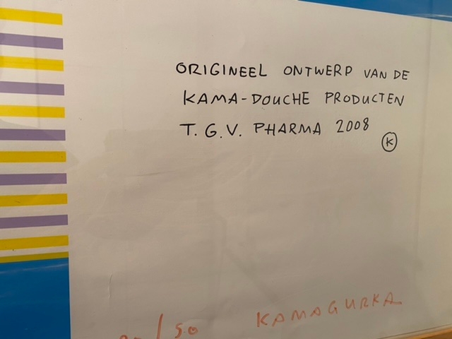 Grand imprimé de Kamagurka. L'oeuvre n'a été réalisée que sur 50 exemplaires dont ce nombre est de 20. Numérotée et signée au crayon rouge. L'oeuvre est encadrée dans un beau cadre en bois. Le coin inférieur gauche présente un petit pli, l'oeuvre est en bon état.